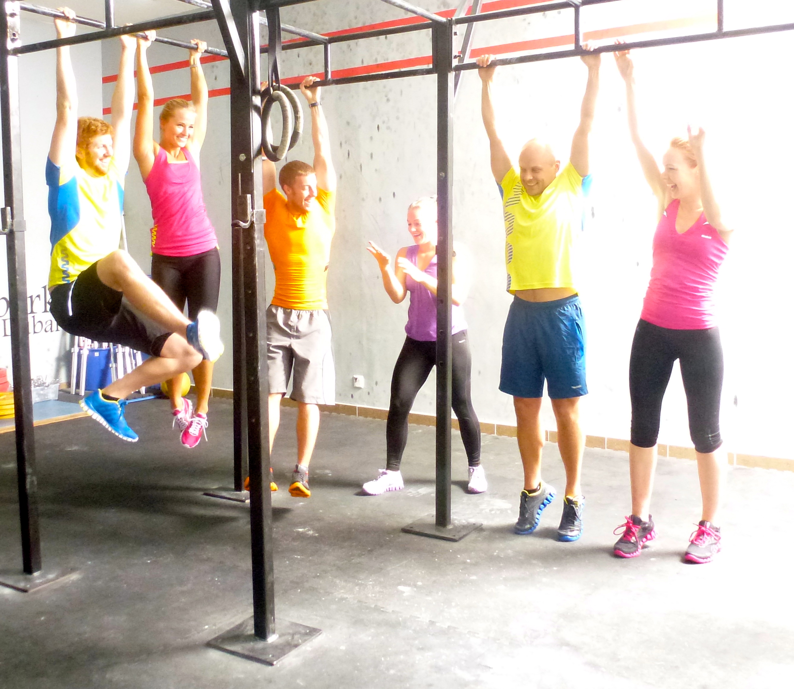 6 stk thruster (30kg), 6 stk chest-to-bar pullup