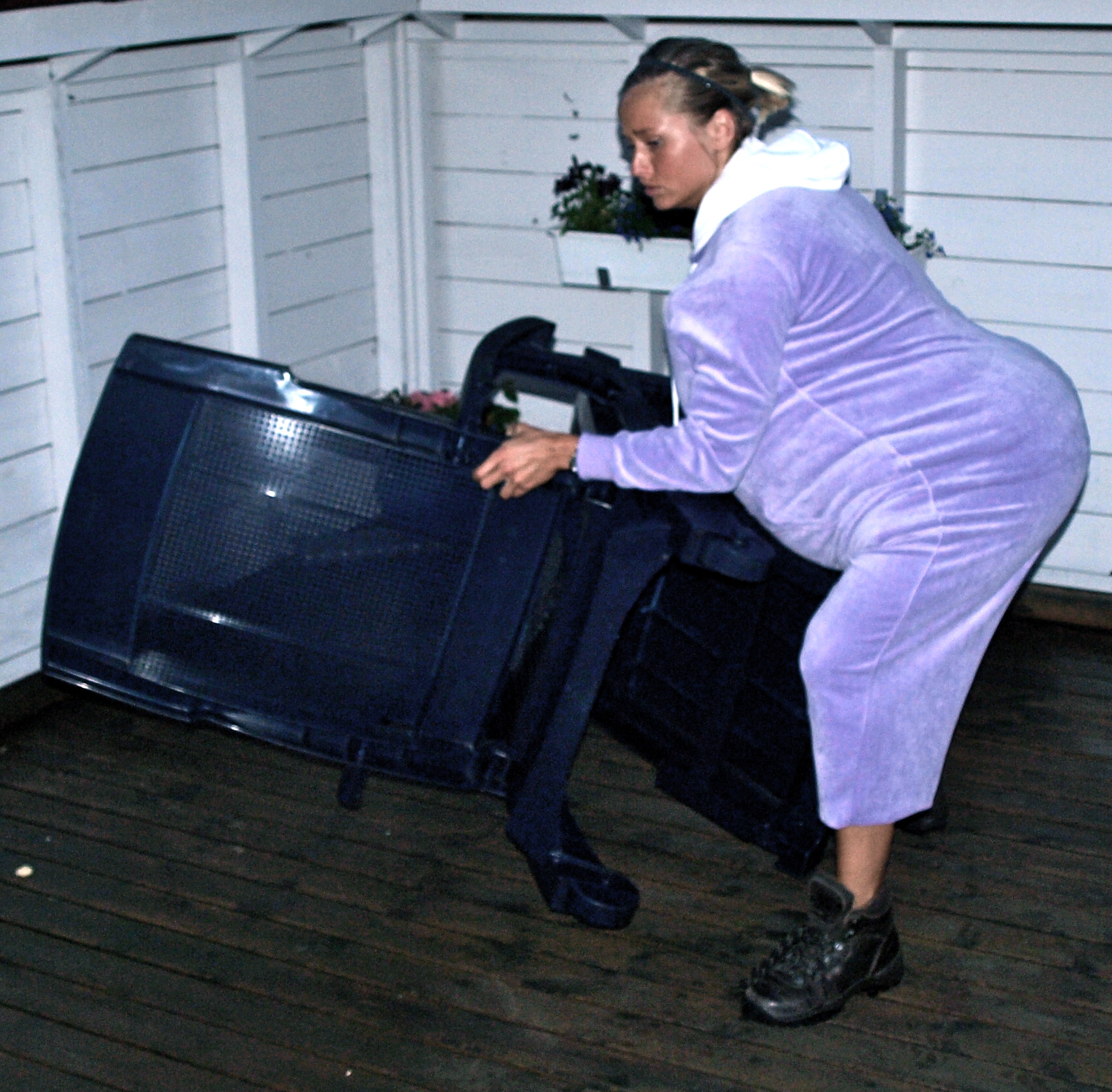 Heldigvis er dette et gammelt bilde, men det beskriver kveldsformen ganske bra. I tillegg synes jeg bildet er ganske kult, mest fordi jeg husker at jeg holdt på å le meg ihjel da det ble tatt. Tenk så morsomt man kan ha det med en onepiece og en pute- det skal ikke så mye til for å underholde meg, bare så det er sagt!