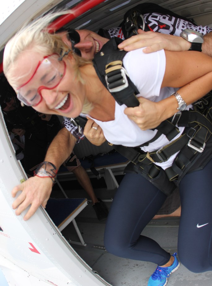 Meeeeen, når jeg stod der, og hang i nesten løse luften i døråpningen, fastspennet på en fyr jeg aldri har møtt, DA folkens! Da kom alle nervene som jeg burde ha hatt den siste uken på en gang, og jeg tenkte what the f**k am I doing!?!?