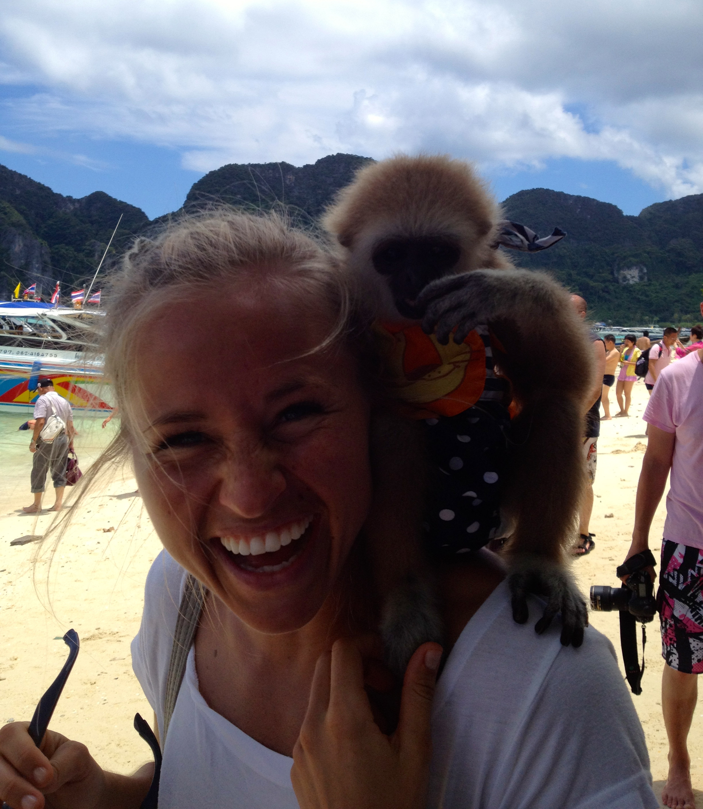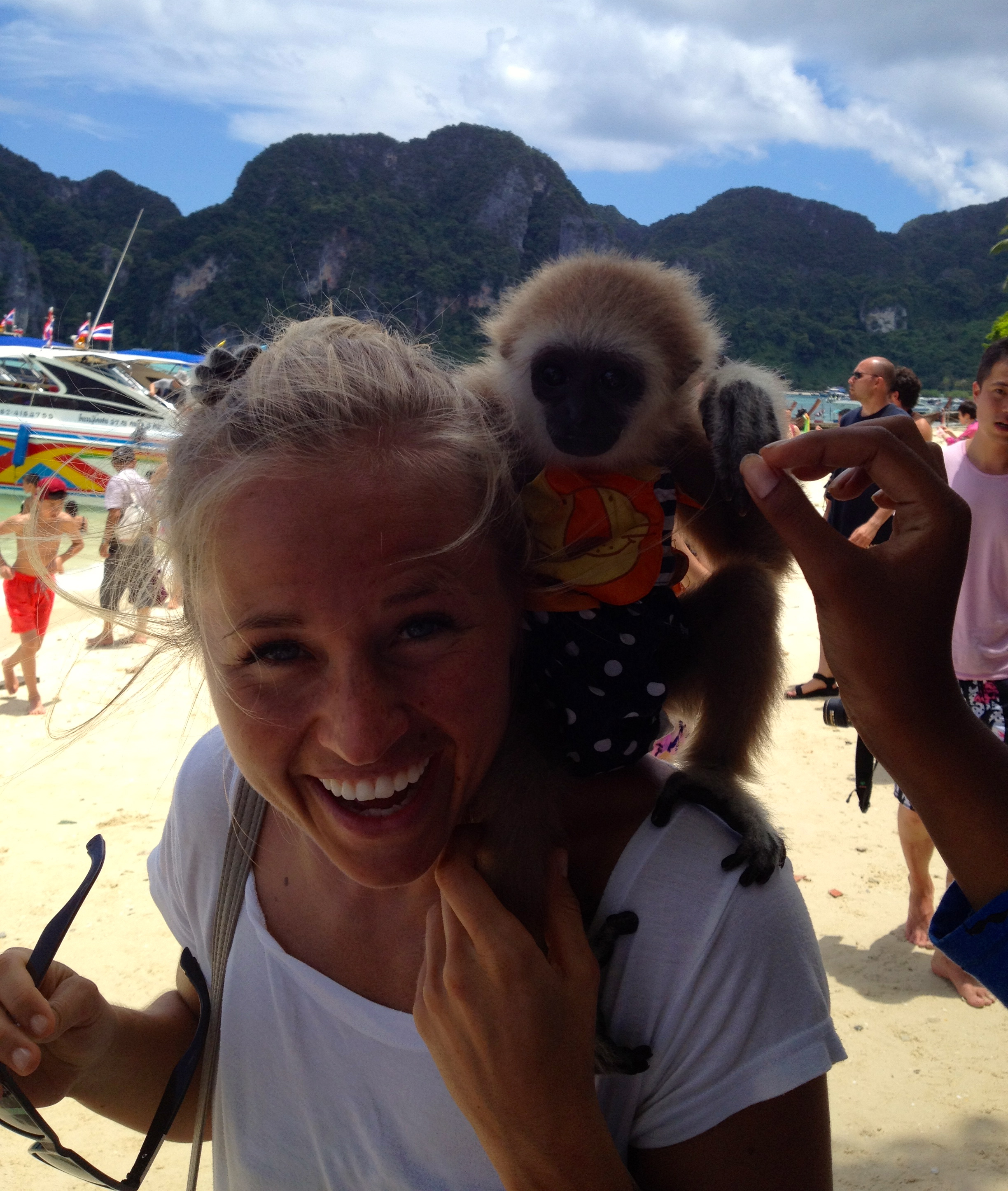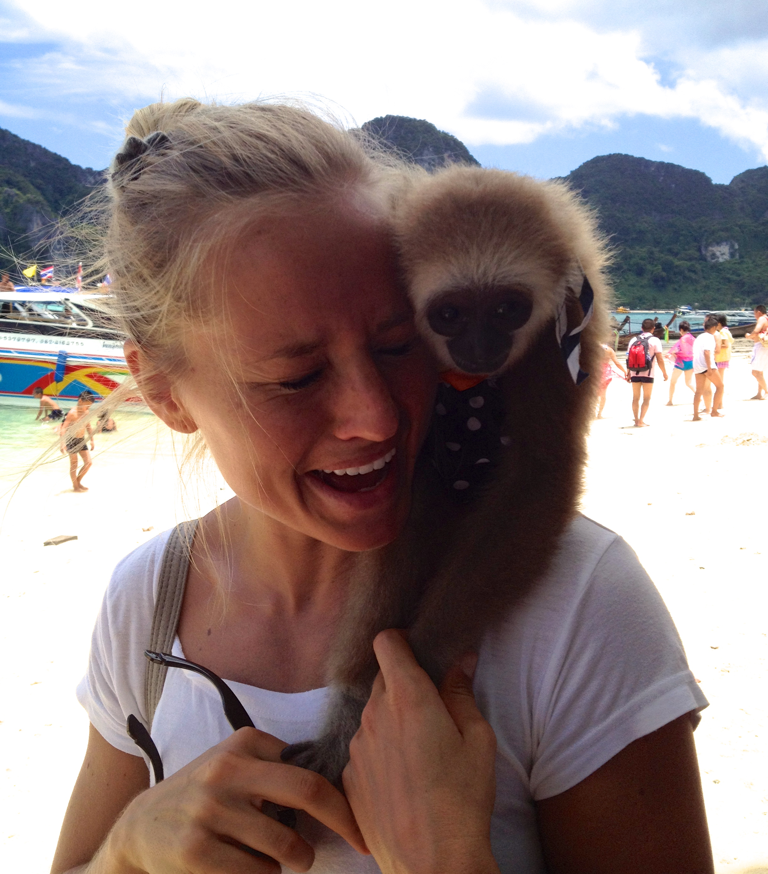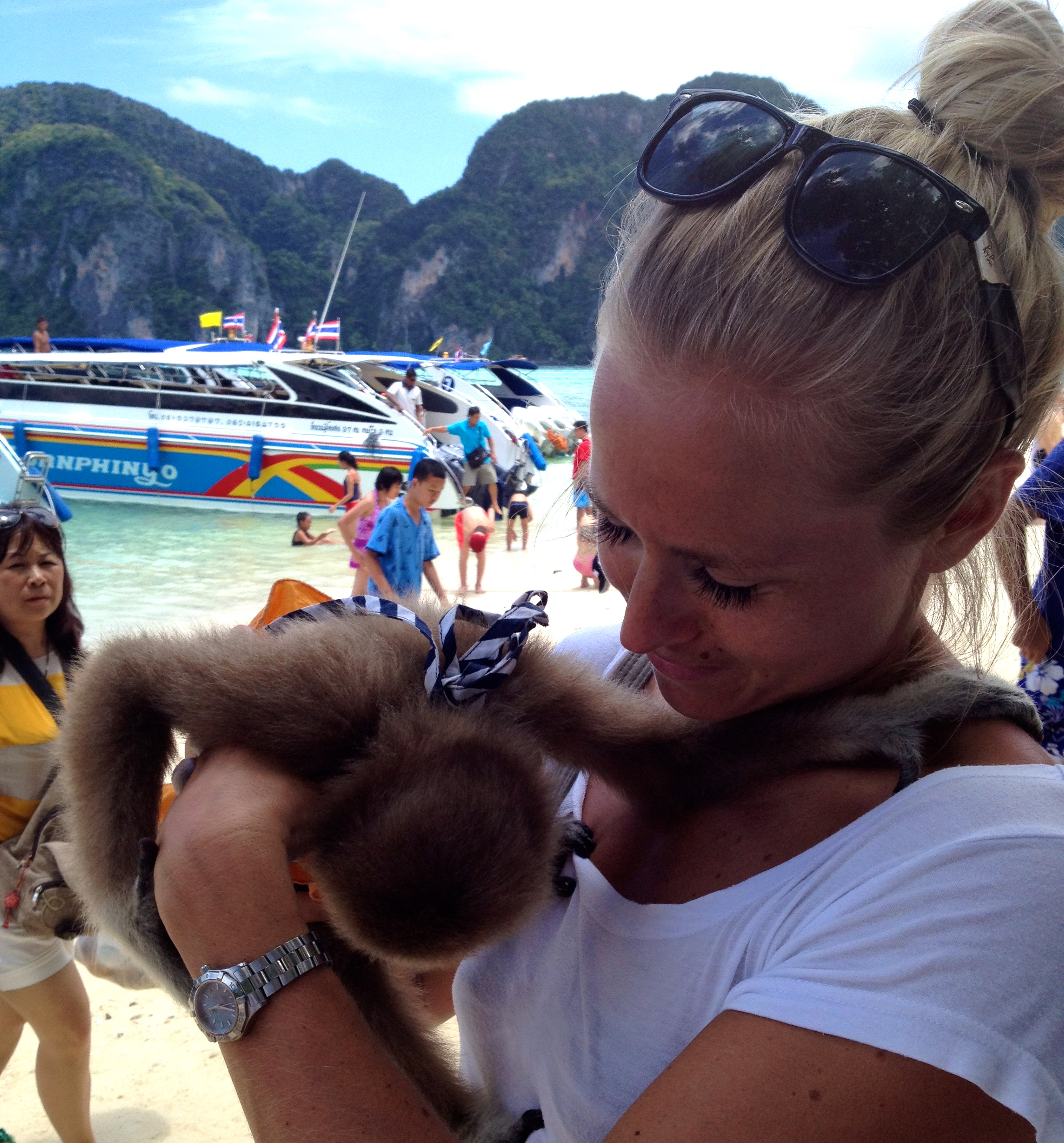 Ååå så søtt! Jeg ville også holdt en ape når jeg var i Thailand, men var heller livredd for de… Angrer nå når jeg ser hvor søt den du holder er! Hvor i Thailand er dere? Kooos dere videre! :))