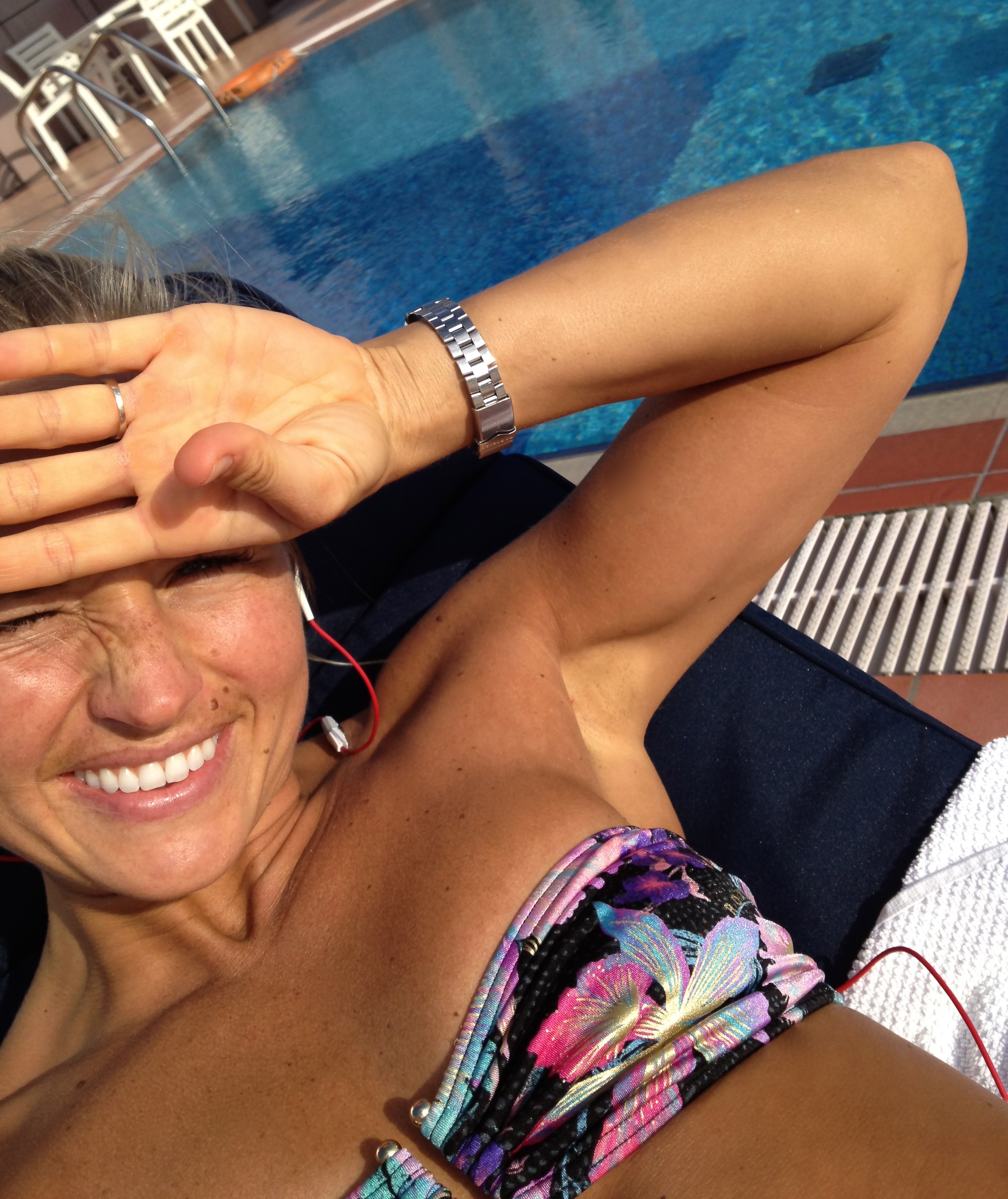Jeg hadde store planer om å komme meg tidlig ut i solen idag, men sengen var så altfor god i morges, og så måtte jeg innvie den nye støvsugeren (som for øvrig var helt fantastisk god!!), og da ble det jo til at jeg ryddet litt her og der og så gikk jo den der berømte tiden. Men jeg kom meg opp til takpoolen til slutt, og fikk nyte solen en god time iallefall før det ble kaldt (!?).