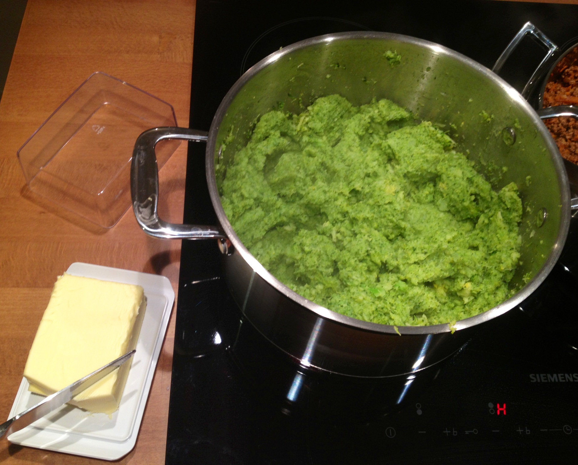 Jeg kokte først 4 brokkoli hoder (..vi spiste ikke opp alt altså, til og med ikke jeg og Ian klarer å spise så mye. Vi har rester til imorgen!). Deretter tok jeg frem stavmikseren som jeg har fått av svigers og moste hele greia