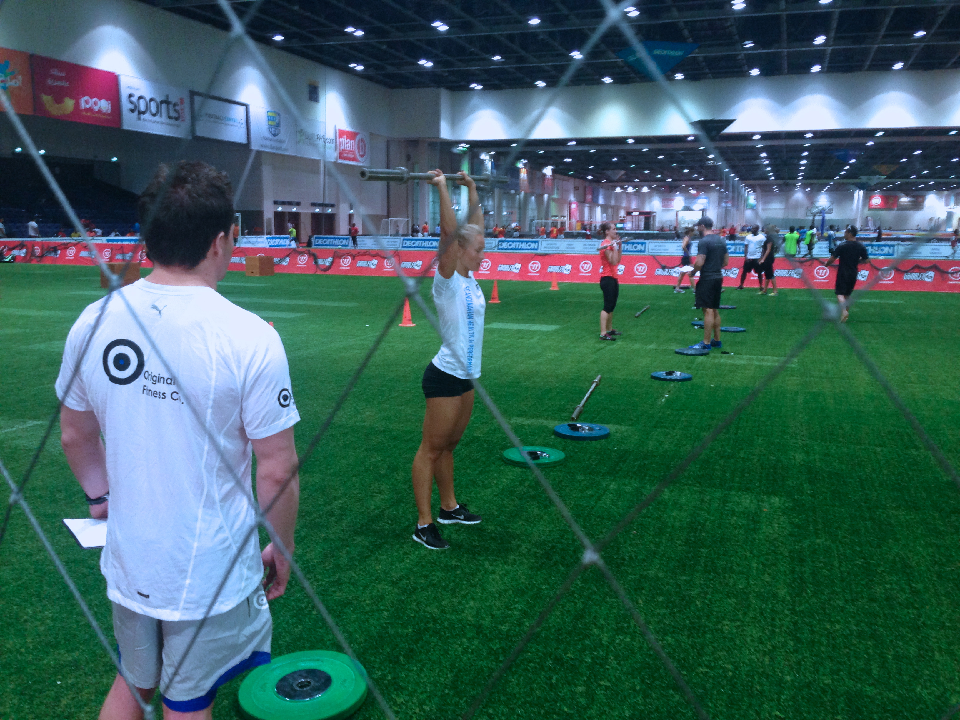 Jeg vant mitt heat, der min største konkurrent (trodde jeg!) var, og var greit fornøyd med tilværelsen. MEN, så dukket det plutselig opp en jente i neste heat som jeg aldri har sett før (fitness communitien i Dubai er ganske liten så man har som regel oversikt), og hun slo meg med 10 sekunder. Litt kjipt egentlig, spesielt siden hun ikke følge standarden helt på thrusterene, meeeen jeg fikk med meg en superfin treningsbh og hotpants i premie likevel så jeg klager absolutt ikke!