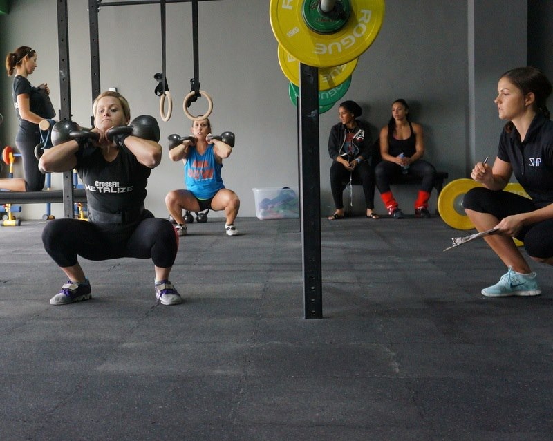 C1) 2 x 20 gående utfall med dobbel KB i front rack @ 2 x 20kg