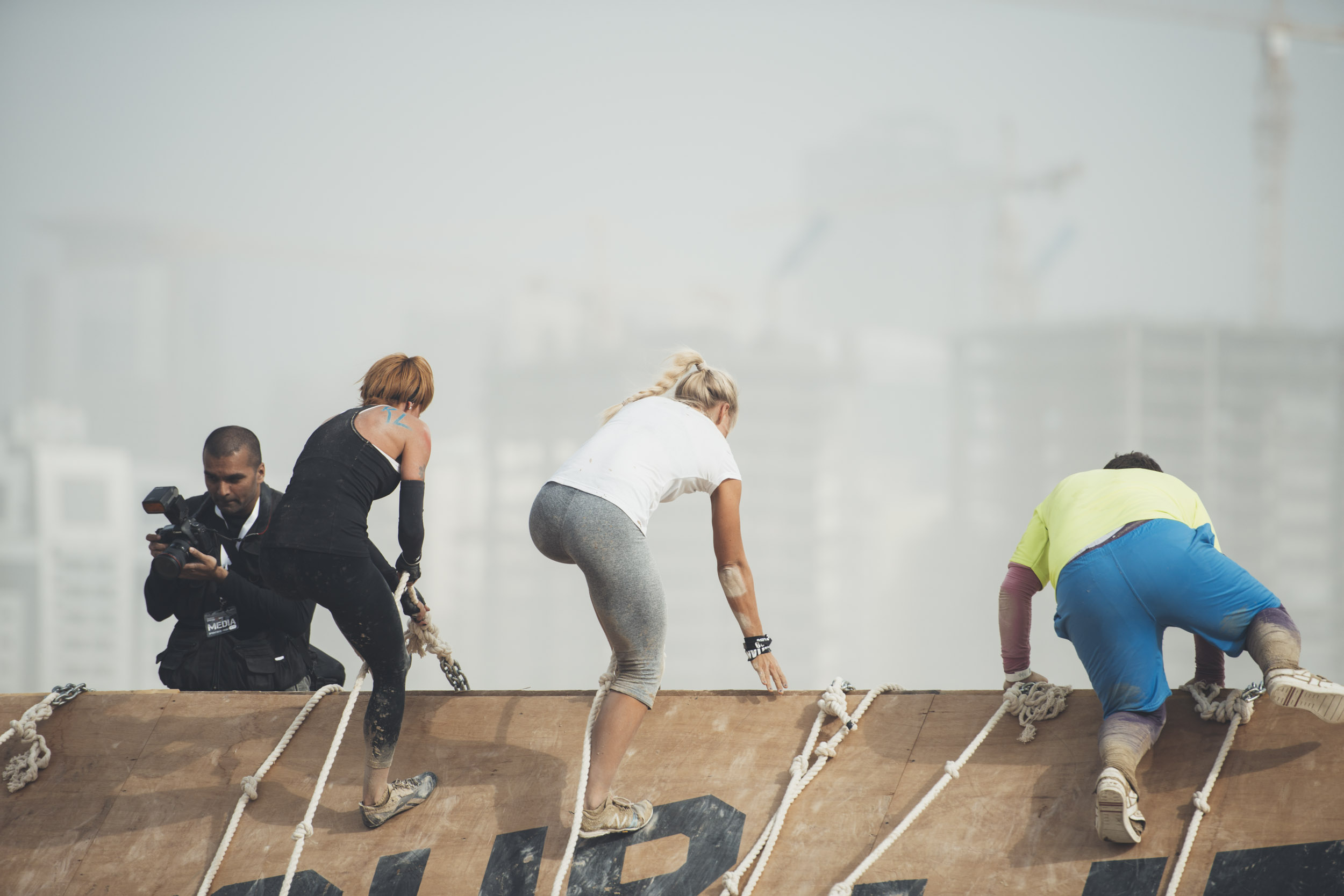 Fredagens morgencardio ble virkelig noe utenom det vanlige. Vi hadde nemlig meldt oss opp til å delta på Spartan Race som arrangertes i Dubai for første gang, og fy søren for en kul utfordring det var! 5 kilometer med 15 ulike hindrer- alt fra løping gjennom gjørme til klatring i tau og spydkasting. Man måtte gjøre 30 stk straffeburpees dersom man ikke klarte ett hinder, og siden Ian var bittelitt flinkere på spydkasting enn jeg var, klarte den sniken å slå meg! Jeg sier han vant på flaks, ikke fitness ;-)