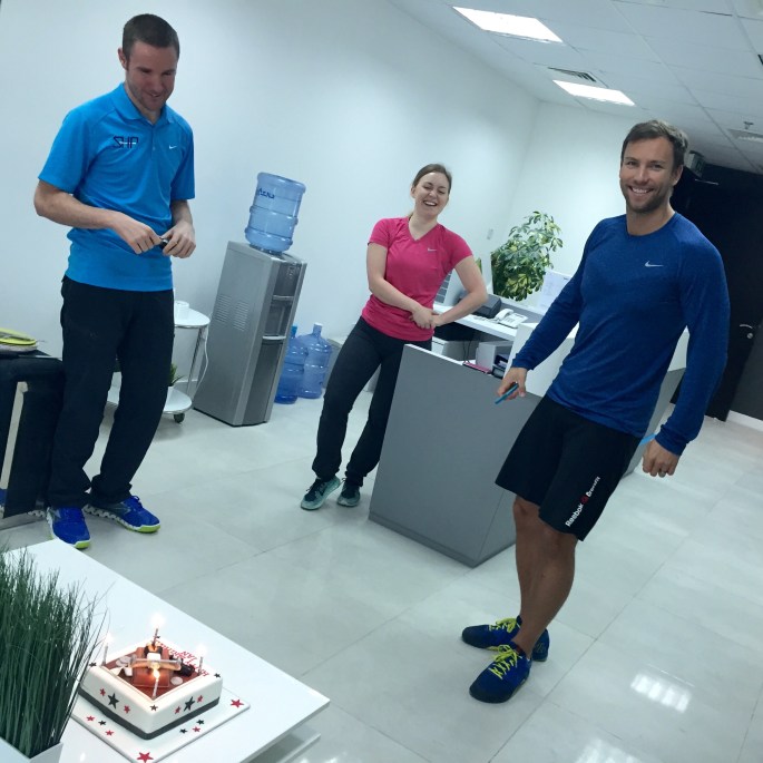 Snille Richard på jobb hadde bestillt kake som vi heldigvis fikk tid til å smake på før vi dro til doktoren. Og vanligvis er jeg ikke så veldig fan av slike kjøpekaker, men denne var faktisk veldig god. Meget bra post-workout frokost må jeg si etter en helt jævlig (pardon my French) høyrepsøkt.