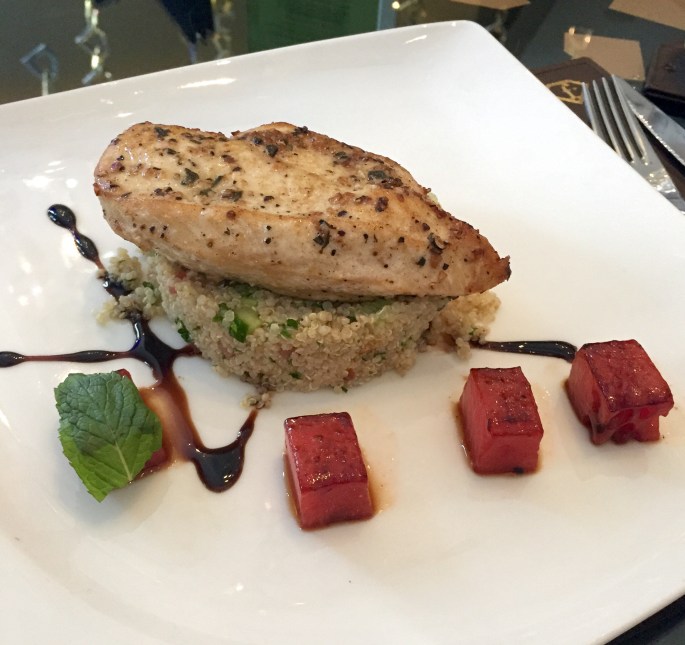 Jeg fikk smake marinert ost med oliven, tidenes beste quinoa-salat, og kjempegod kylling. Til dessert valgte jeg granola med yogurt og frukter, men jeg tror jammen at de hadde glemt yogurten, så jeg fikk en aldri så liten food-envy på Ian’s posjerte pære i cashew- og karamellkrem. Anyways, det var en koselig brunch, og jeg og Ian har planlagt å teste litt ulike restauranter i helgene fremover.