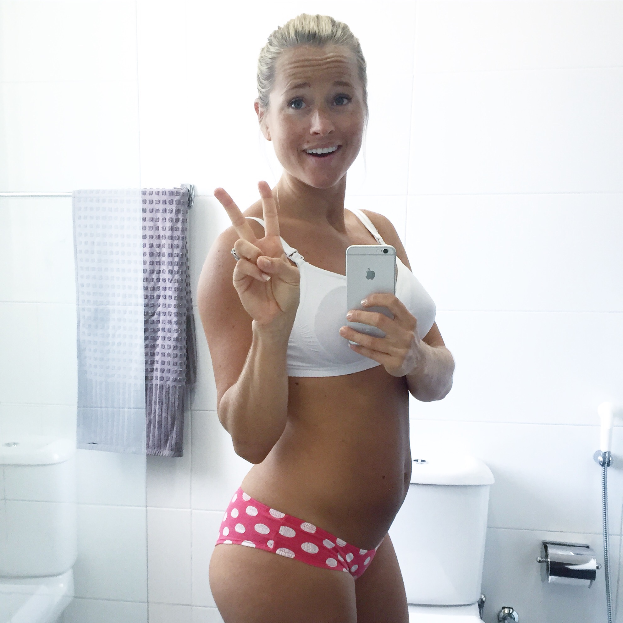 Husker dere kanskje innlegget jeg la ut sist onsdag med det jeg håpet var aller siste progresjonsbilde? Vel, ca 30 minutter etter at det bildet ble postet var det som at jeg tisset i den prikkete trusa. Bare at det var ikke tiss. Eksakt hva det var vet jeg ikke, men ikke lenge etterpå kom den såkalte slimproppen, og jeg kjente at jeg virkelig begynte å bli spent. Google fortalte at det kunne ta lang tid mellom det at slimproppen gikk og start av fødsel, men det var i alle fall mer action enn jeg hadde hatt så langt!