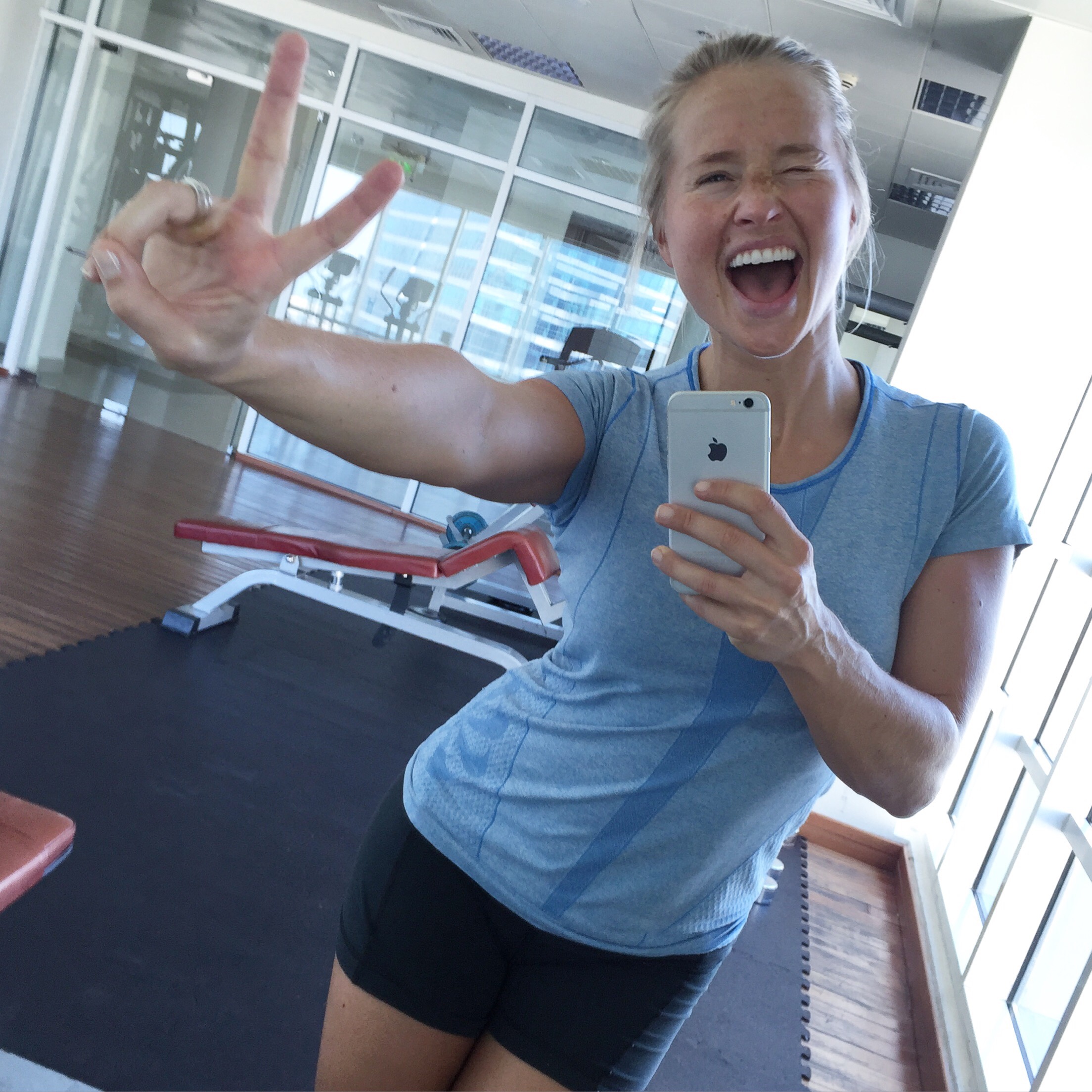 Når det er sagt var det ganske digg å trene i dag likevel ;-) Men er det ikke det de sier, at de beste øktene ofte er de som man egentlig ikke hadde lyst til å gjøre? Anyways, jeg måtte bort på jobb med noe til Ian, og da jeg kom frem til gymmet sov Kaia så godt i vognen at jeg tenkte jeg like gjerne kunne ta en økt når jeg var der. Det ble 3 runder av: