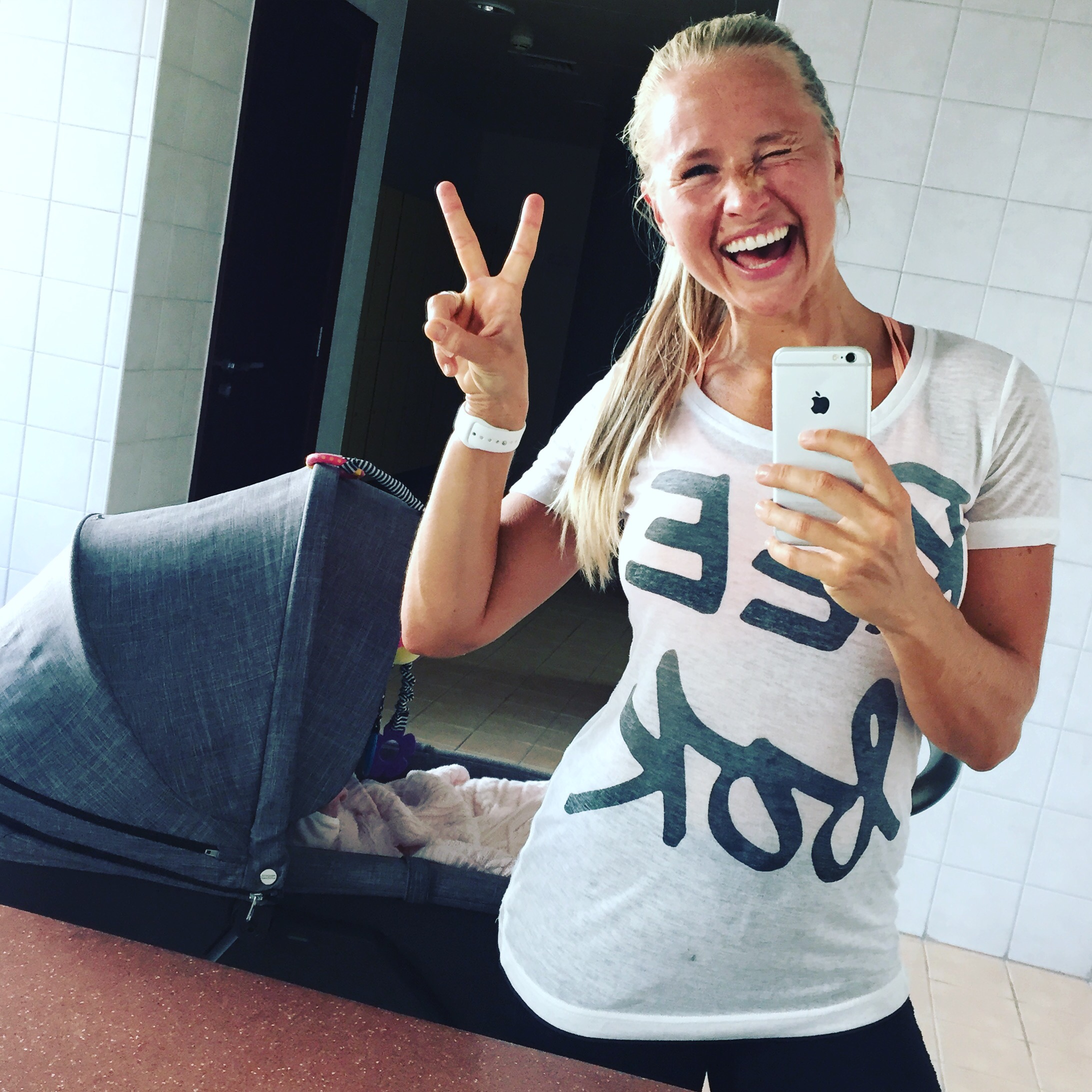 Sånn ellers kan jeg nevne at jeg fikk meg en svært koselig intervalløkt i ettermiddag. Altså, intervalltrening er jo egentlig alt annet enn koselig, men Kaia våknet i det jeg skrudde på tredemølla, så da fikk jeg verdens beste selskap da.