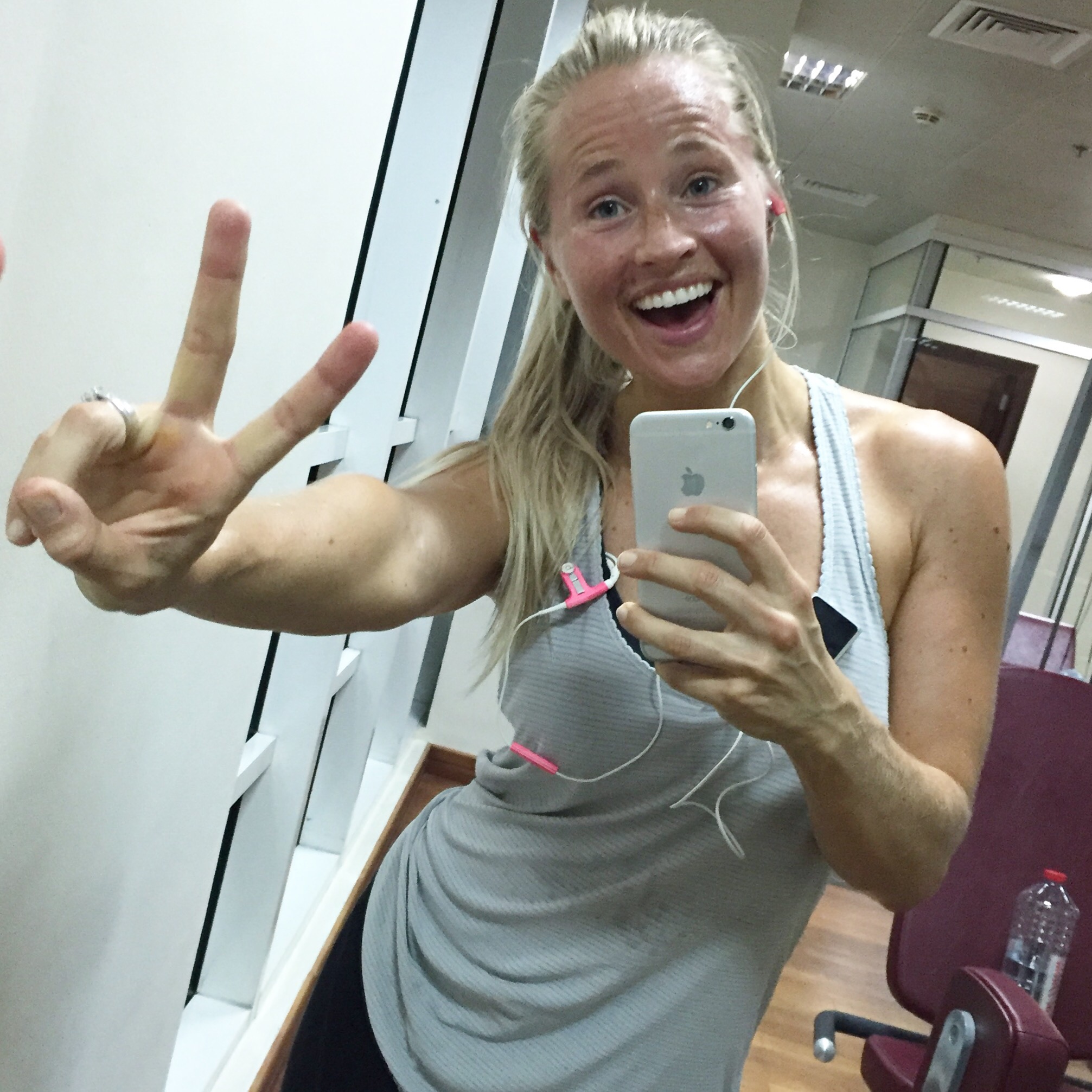 I dag løp Kaia intervaller med meg! Og med det mener jeg at hun lå i vognen ved siden av tredemøllen mens jeg løp ;-) Men nå som jeg tenker meg om er det faktisk første gang jeg hadde henne med på gymmet i 38ende, og i tillegg var hun lys våken i vognen under halve økten, så ja, det føltes ut som at hun var med meg på trening i dag.