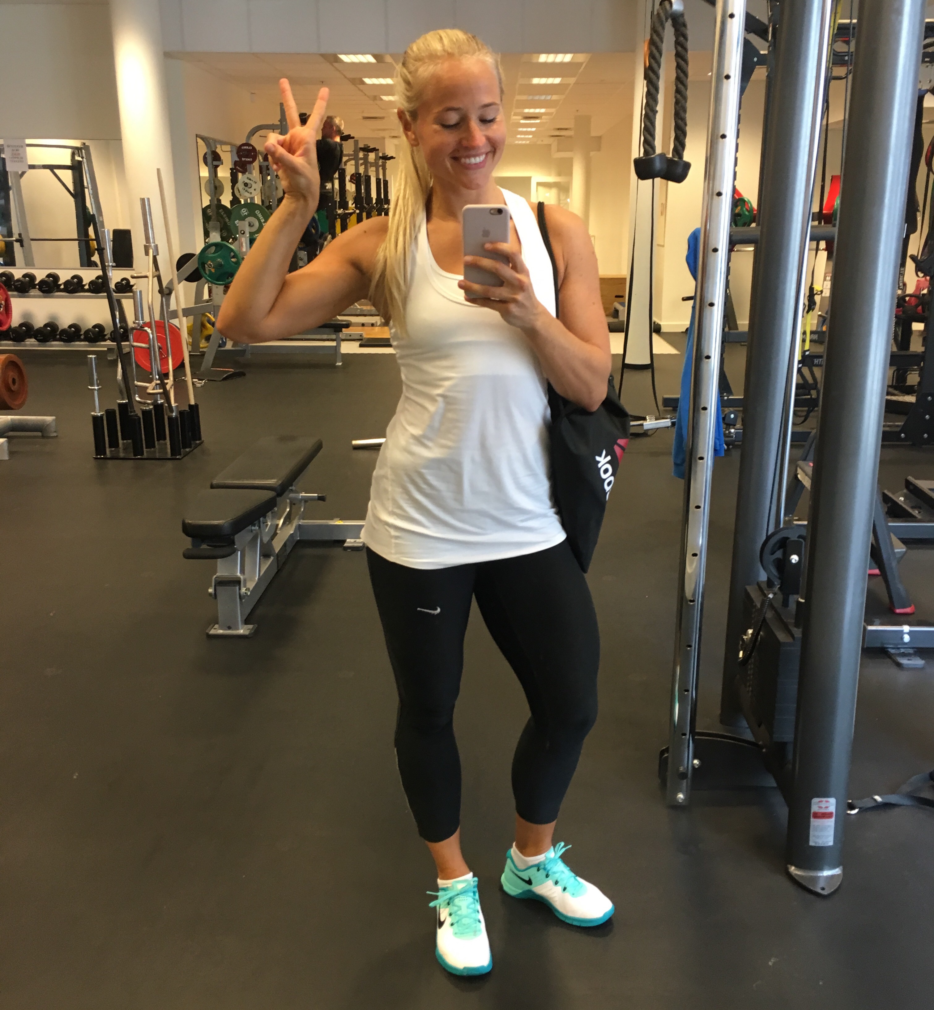 I dag fikk jeg trent litt på morgenkvisten, og det gjorde godt for skrotten etter to dager med lite av denslags. Foruten i går da jeg holdt på å dø i Bootybuilderen da (ref. Instagram). Det ble 10 x 10 med knebøy og skulderpress, og én ting er sikkert: den økten var mye lettere da jeg gjorde den i gravid tilstand etter fjorårets Convention!