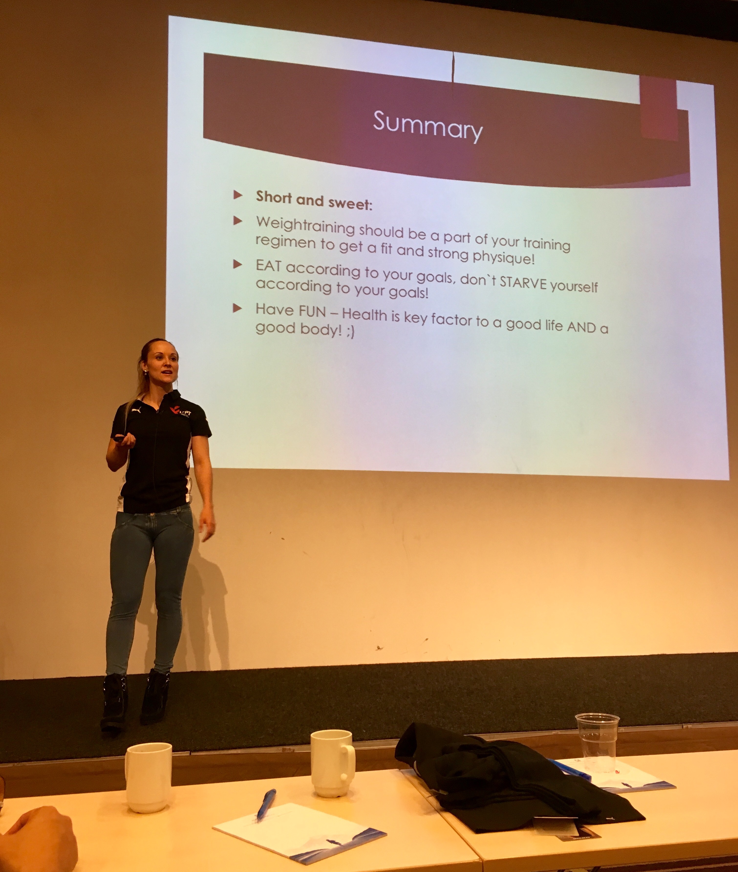 Vi snakket om trening i små grupper, dvs trening med 2-6 personer, ett konsept alt for få personlige trenere utnytter seg av- mener vi da. Det var strengt tatt Ian sin forelesning, men jeg fikk lov til å snakke litt jeg også. Jeg blir nok aldri komfortabel med å gjøre sånt, men det er for det første helt sinnsykt at jeg fikk muligheten, og desto sykere at jeg våget! Det hadde ikke skjedd for ett par år siden for å si det sånn!