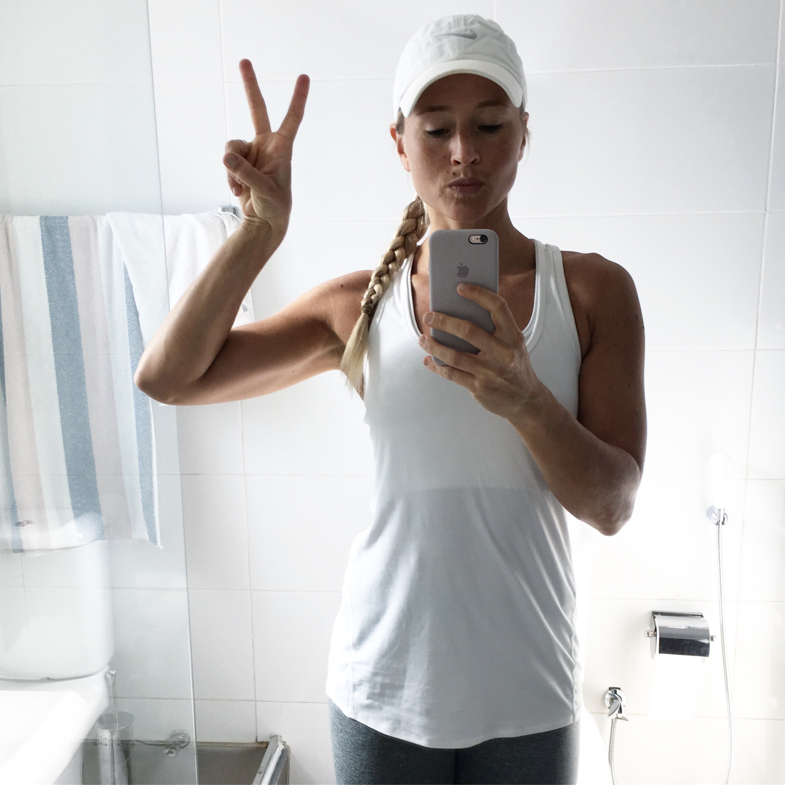 Jeg ligger i skrivende stund strekk ut på en solseng i sånn ca 30 grader. Det er god bris, Kaia sover, og jeg har akkurat fortært en halv sjokoladeplate. Foruten DJ-flåten som spiller ALTFOR høy musikk for undertegnede, så har jeg absolutt ingenting å klage på! Jeg fikk til og med løpt i morges- og det til tross for at Ian er på reis og den vanlige lørdagsprosedyren utgikk. Jeg har oftest en følelse av glede heller enn stolthet etter trening, men i dag var jeg stolt ass. Både av meg og Kaia *klappesegselvpåskulderen*