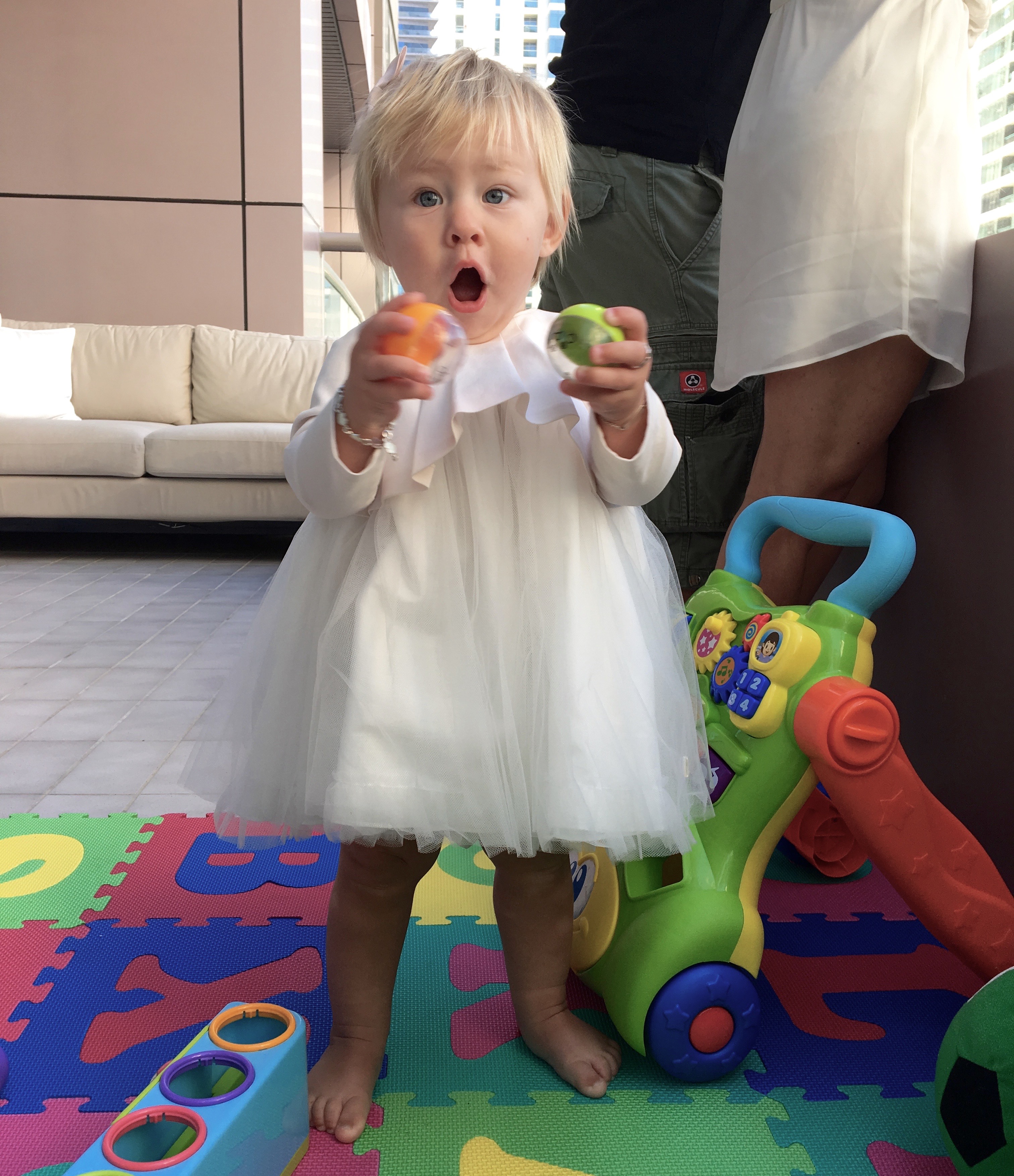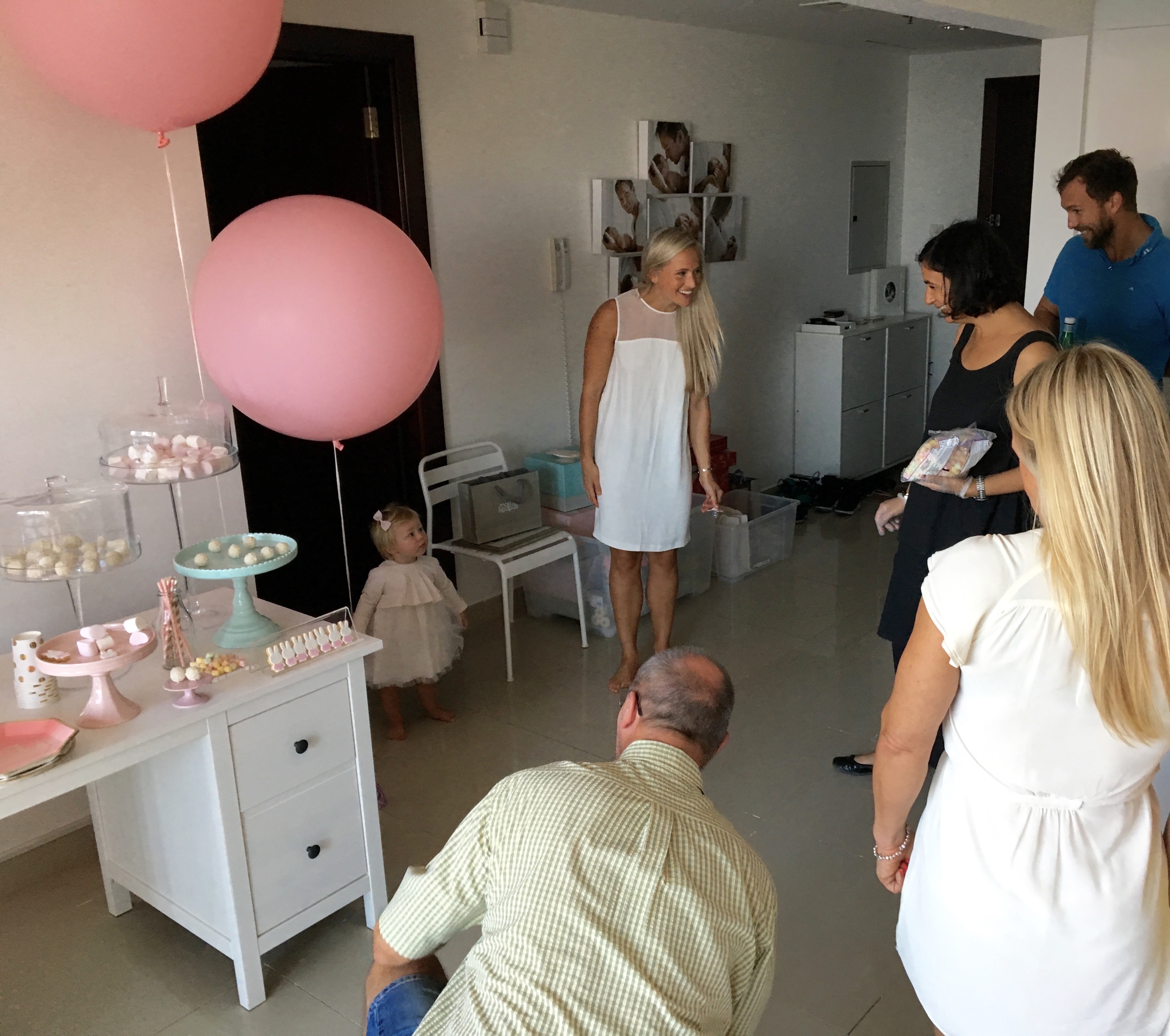 Vi var lenge i tvil om hvor vi skulle ha festen. Leiligheten vår er jo ikke akkurat stor, og vi hadde invitert ca 35 stykk. Det finnes jo masser av fine lokal og restauranter å leie her i Dubai, og vi var også innom tanken om å feire i parken borte i høgget her. Men så en kveld lå jeg og grublet og fant ut at dersom vi utnyttet altanen og ommøblerte litt i stua så kunne det funke, så da bestemte vi oss bare for å ha det hjemme. Med vaskehjelp booket dagen før og mat og kake levert så ble det jo en hel del mindre stress. Denne frua tok seg til og med tid til en joggetur på morgenkvisten, og det sier sitt ass!