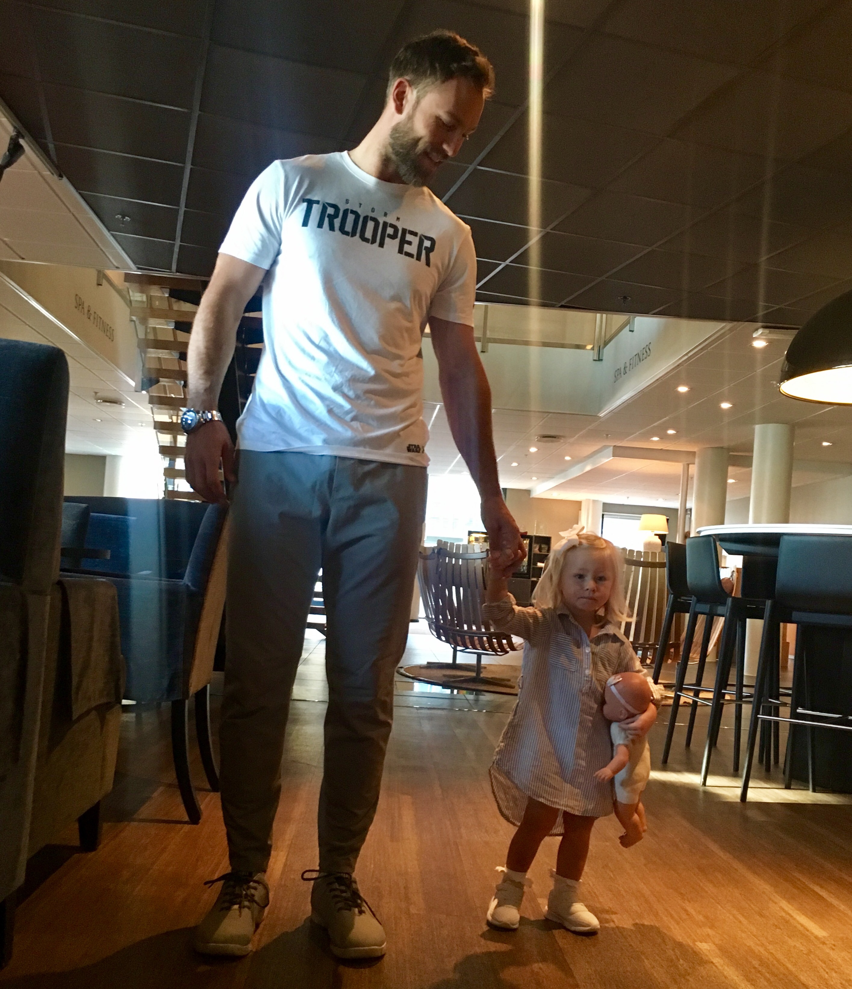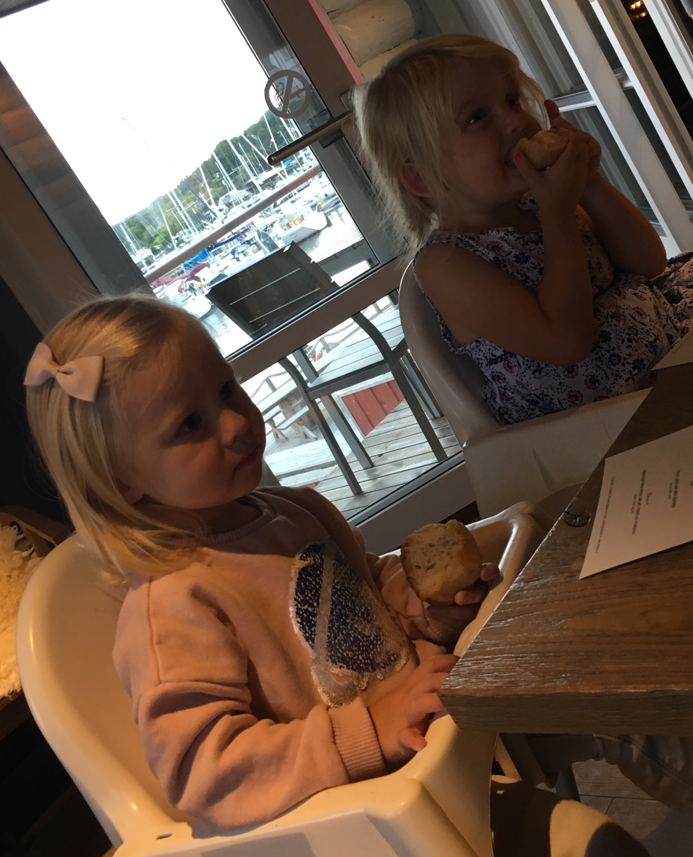 I går kveld var vi på en kjempekoselig restaurant med hele gjengen. Maten var kjempegod, men vi måtte droppe ostekaken til dessert (hyl), for da hadde Kaia fått nok. Likevel holdt hun koken hele den lille spaserturen hjem, men sovnet fort når Ian la henne vel fremme på hotellet.