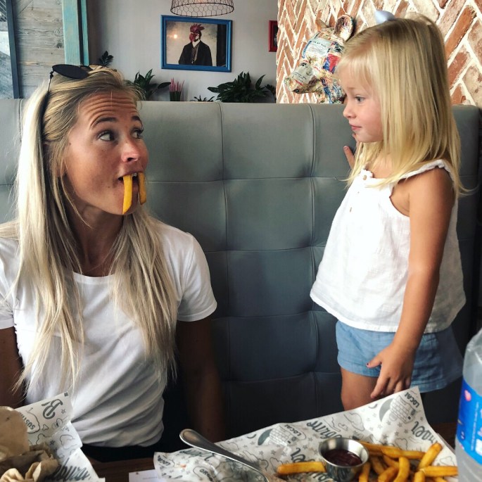 Dagen etter var vi på stranden, og siden vi begge hadde lyst til å trene gjorde vi det på tur. Jeg først, mens Ian og Kaia lekte i sanden, og så Ian mens jeg prøvde å få Kaia til å ta en lur i vognen. Jeg snappet selvsagt litt fra intervalløkten også. Jeg kan tulle med at «if it’s not on Instagram it didn’t happen», men må jo bare innse at det har blitt helt naturlig for meg å dele de fleste treningene mine på SoMe. Da fikk jeg en snap tilbake fra ei som skrev «of course u run first thing in the morning after having a burger». Og jeg bare: «the first thing I had this morning was pancakes, but whatever», for jeg kjente meg smålig fornærmet over at hun insinuerte at det var bare derfor jeg løp. For å kvitte meg meg burgeren liksom.