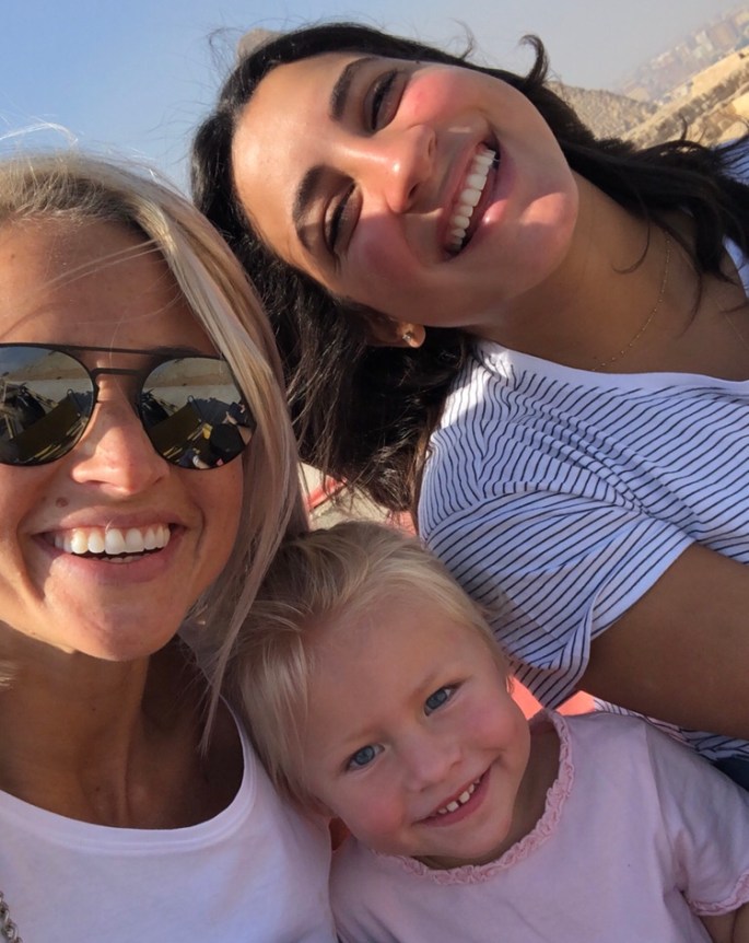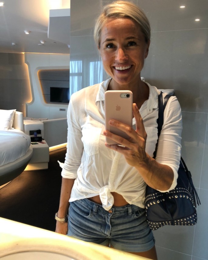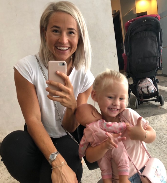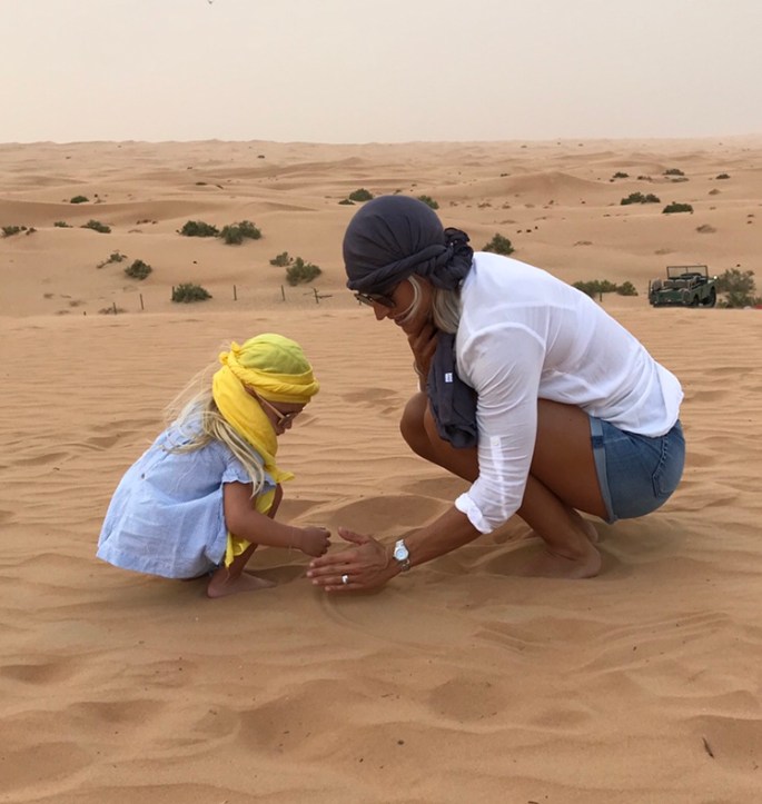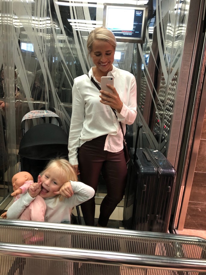 Søndag sjekket vi inn på V-hotel, ett av de mest spesielle hotellene jeg har sett på en stund. Rommet var gigantisk, bare dusjen alene var større enn soverommet vårt til vanlig liksom, og man stod omtrent oppå Sheik Zayed Road mens man dusjet. Sengen var rund, og så stor at Kaia spurte hvor jeg var når hun våknet i midten av meg og Ian. I tillegg var speilene dekorert med Instagrambilder av oss, og Kaia fikk et lite kit med muffinser som hun kunne dekorere selv. En meget fin gest altså!