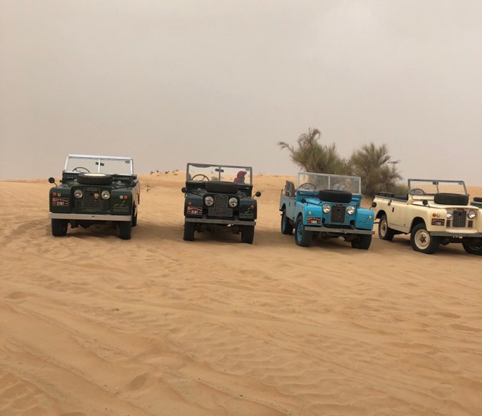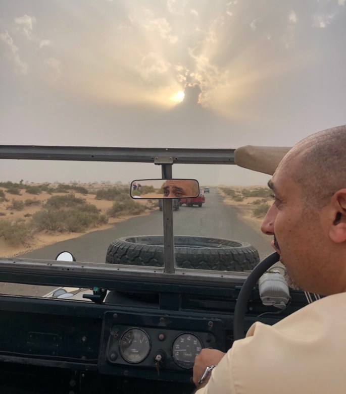 Første aktivitet på planen var ørkensafari med Platinum Heritage. Jeg har jo vært på ørkensafari en del ganger før, og forventet egentlig ikke at dette skulle være noe særlig annerledes, men der tok jeg feil gitt! Vi hadde privat sjåfør og guide, snille Sam, som kjørte oss i en vintage Landrover fra 1951. I stedet for den typiske dune bashingen ble vi kjørt gjennom Sheiken sitt naturreservat og fikk se ville dyr liksom! Fremme på camp fikk vi lokal mat av første klasse, blant annet geit som hadde blitt tilberedt nedgravd i en gryte i bakken (!) i 6 timer. Kjøttet falt i smak hos både meg og Kaia dersom noen lurte.