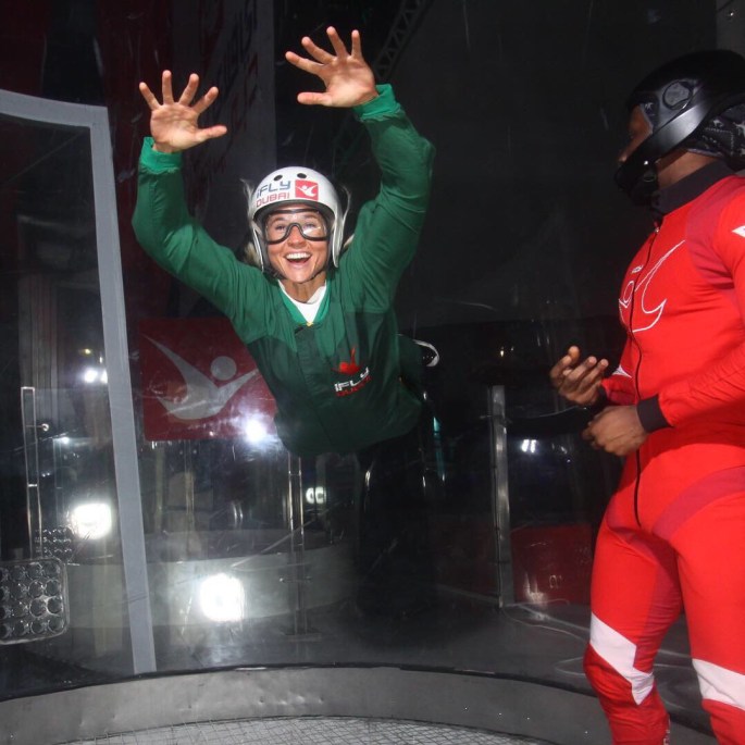 På ettermiddagen dro vi til Mirdif City center der jeg fikk teste innendørs skydive på iFly Dubai. Hele seansen var over på en liten halvtime, men på den tiden var jeg innom ganske mange stadier på følelsesaspektet kan jeg love. Det hjalp ikke akkurat at han fyren som var første mann ut hadde litt erfaring med innendørs skydiving fra før. Han fikk det jo til å se så lett ut, men jeg innså fort at det absolutt ikke var tilfelle når det var min tur. Det var dritkult, men dritvanskelig, og jeg skulle gjerne hatt mer tid inne i vindtunellen.