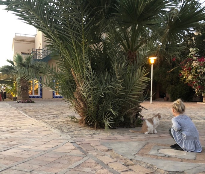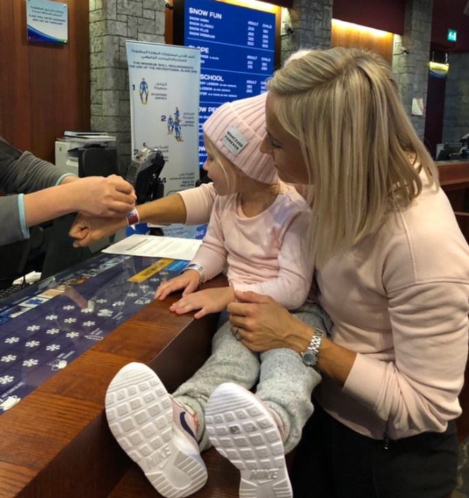 Mandags morgen hadde Ian fri fra jobb og Kaia fri fra barnehage, så det ble en sløv morgen med litt trenings, hotellfrokost og mye kos. Vi byttet også hotell, og sjekket inn på Hilton Al Habtoor City som ligger rett rundt hjørnet fra V-hotellet.