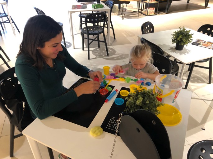 Vi fikk også lov til å teste Orbi, som er et slags futuristisk naturmuseum med så mange gadgets og realistiske animasjoner at Kaia rett og slett ble redd. Det var veldig synd, for det endte med at vi måtte gå, men gjett om vi skal tilbake når hun blir stor nok til å forstå at elefantene på skjermen ikke løper på oss på ekte ;-)