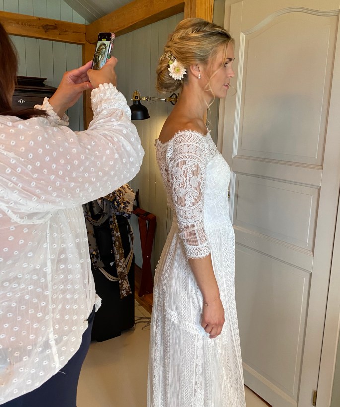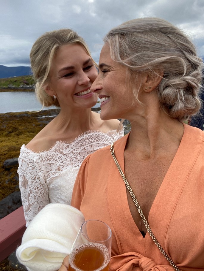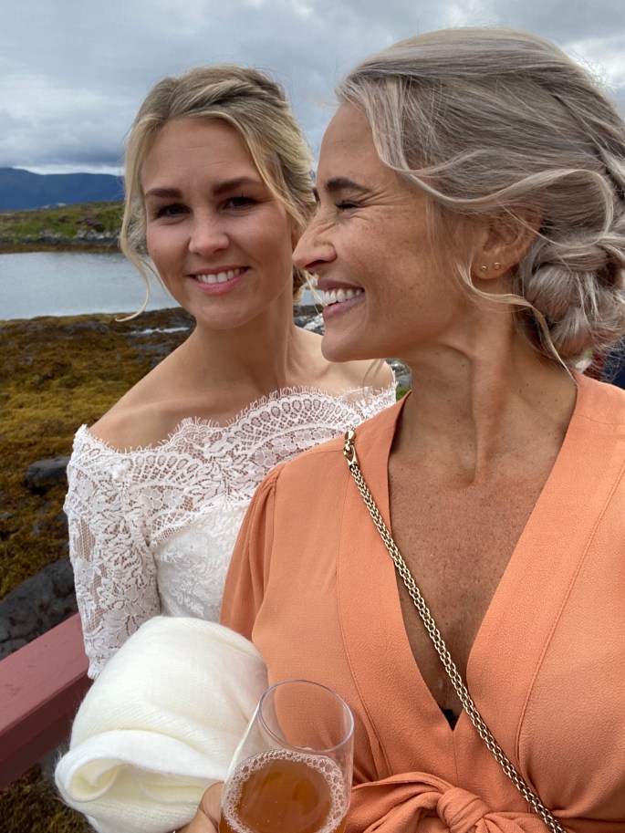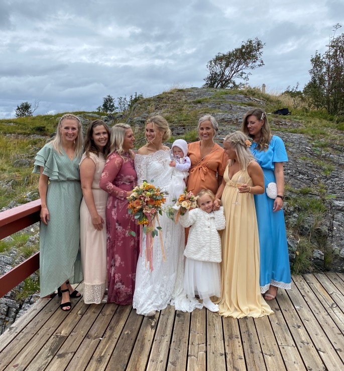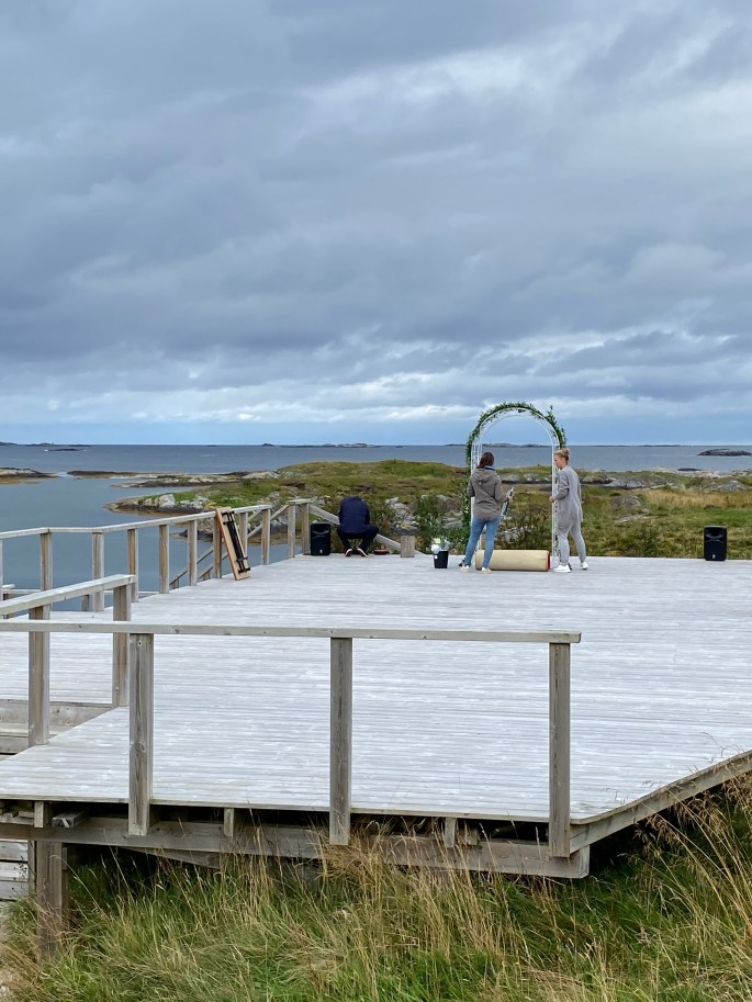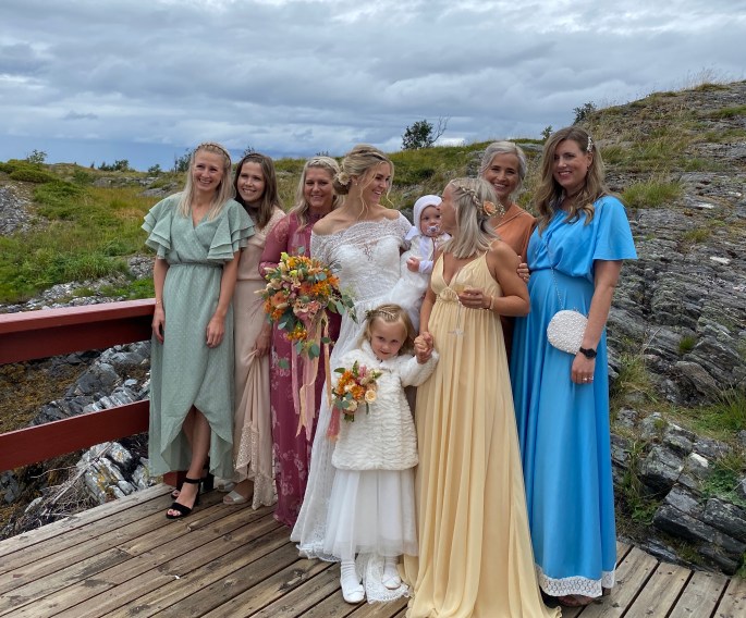 Vi ble fraktet med båt til holmen fredag ettermiddag, og der ble hele brudefølget til søndagen. Det ble en helt egen atmosfære med alle samlet på ett sted der vi bare kunne gå kort fra det ene lokalet til det andre, og alt var så gjennomført og vakkert at det føltes som at vi var med i en film!