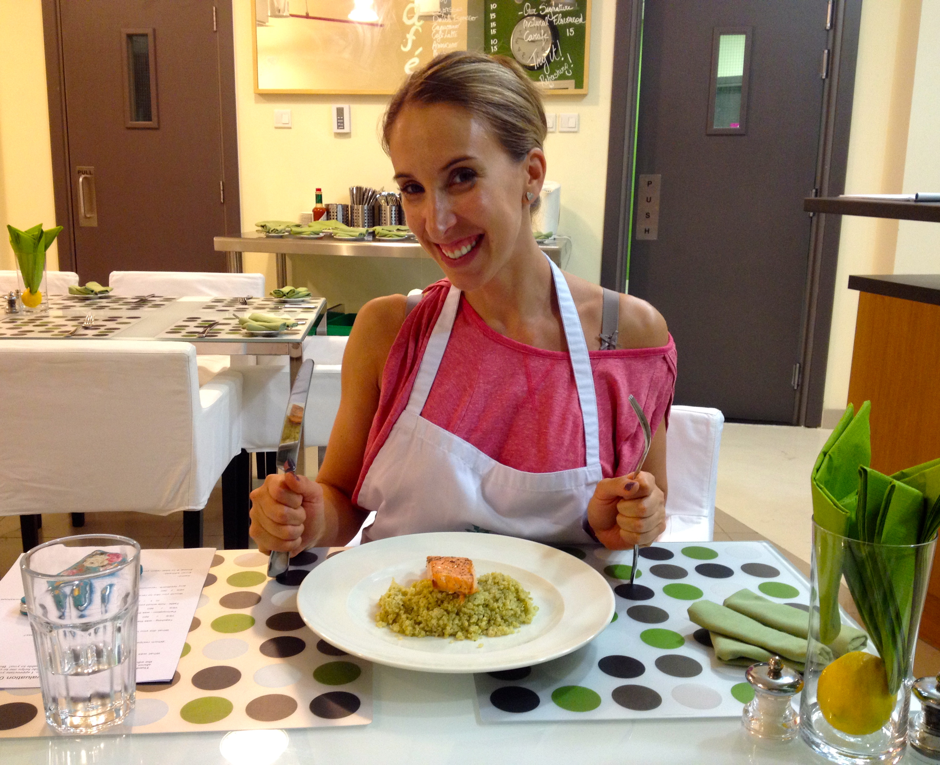 Ian spiser alt, inkludert papir, og er absolutt ikke kresen i matveien, så det var ikke på grunn av han at jeg deltok på kurset iallefall. Vi har jobbet litt frem og tilbake med en journalist som skriver ulike artikler for en av de større avisene i Abu Dhabi og Dubai. Melanie, som hun heter, skulle skrive om dette matlagingskurset, og siden temaet var «sunn mat» ville hun ha med meg for å kunne gi en «kostholdseksperts» syn på det hele ;-)