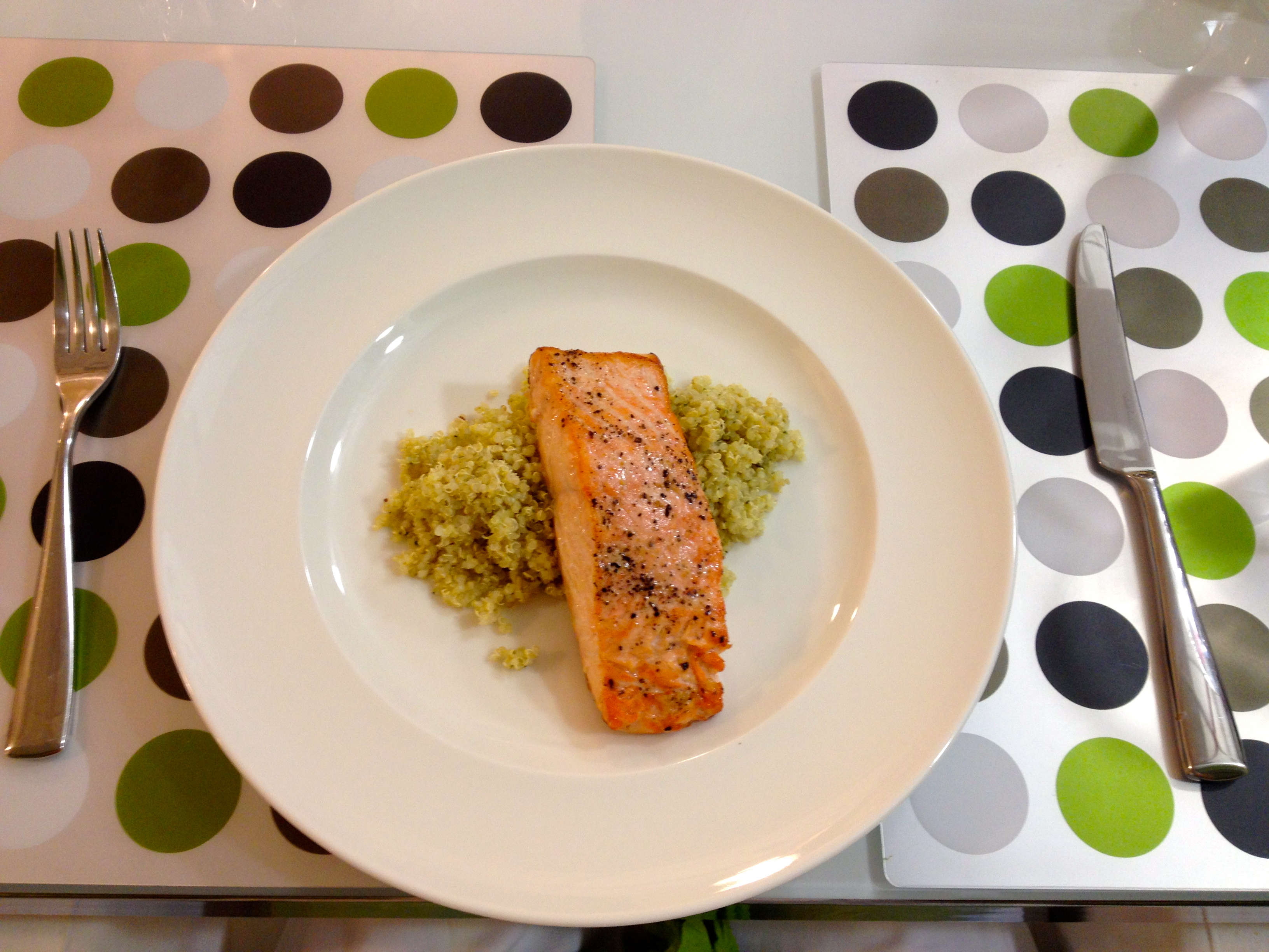 Hovedretten var veldig basic, laks og couscous, men kokken fortalte mye om hva man skal se etter når man kjøpte laksefileter, og om oppbevaring og sånn, så det var jo noen tips å hente her også.