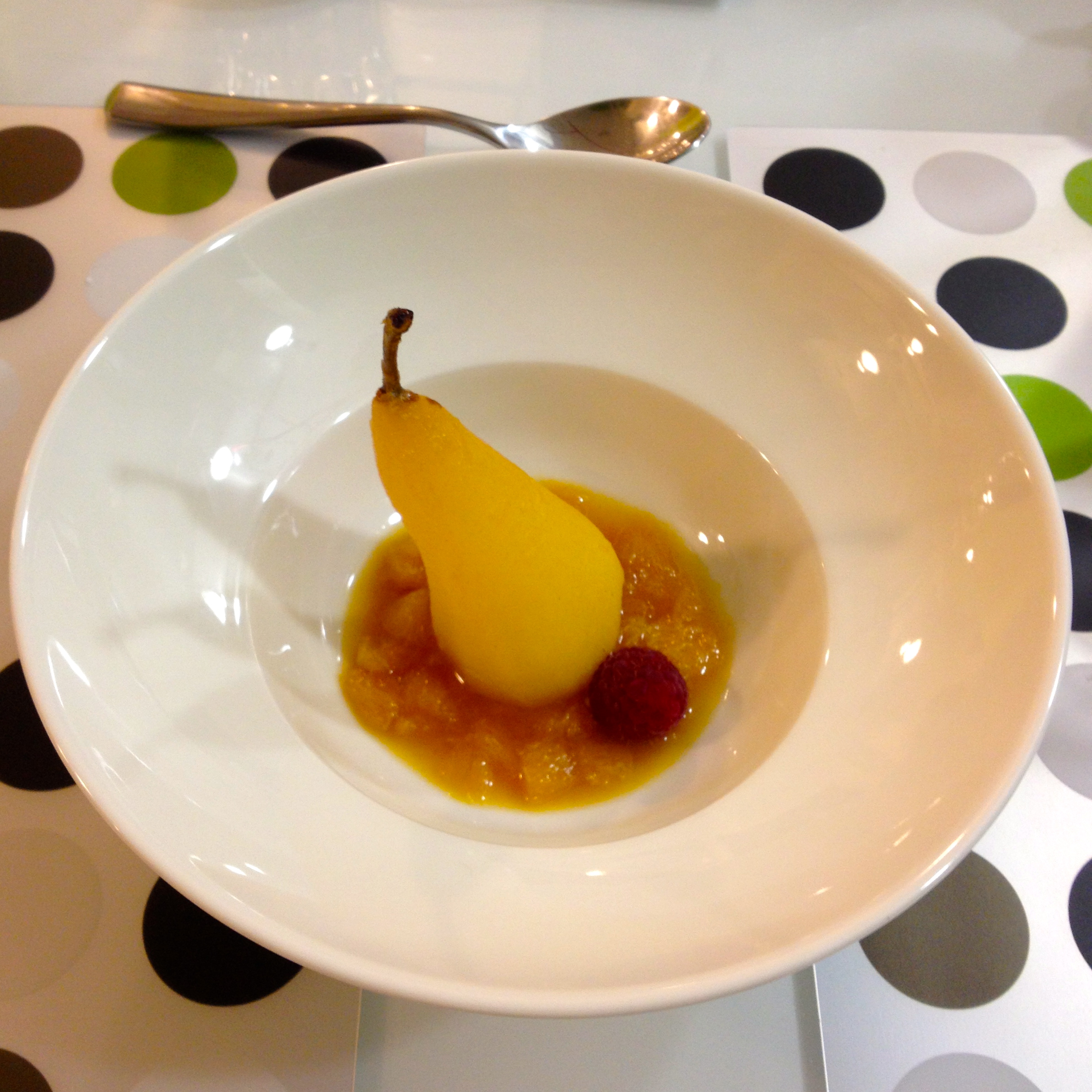 Desserten var «poached pear», eller pære kokt i appelsinsaft om du spør meg :-D Den ble faktisk overraskende god!