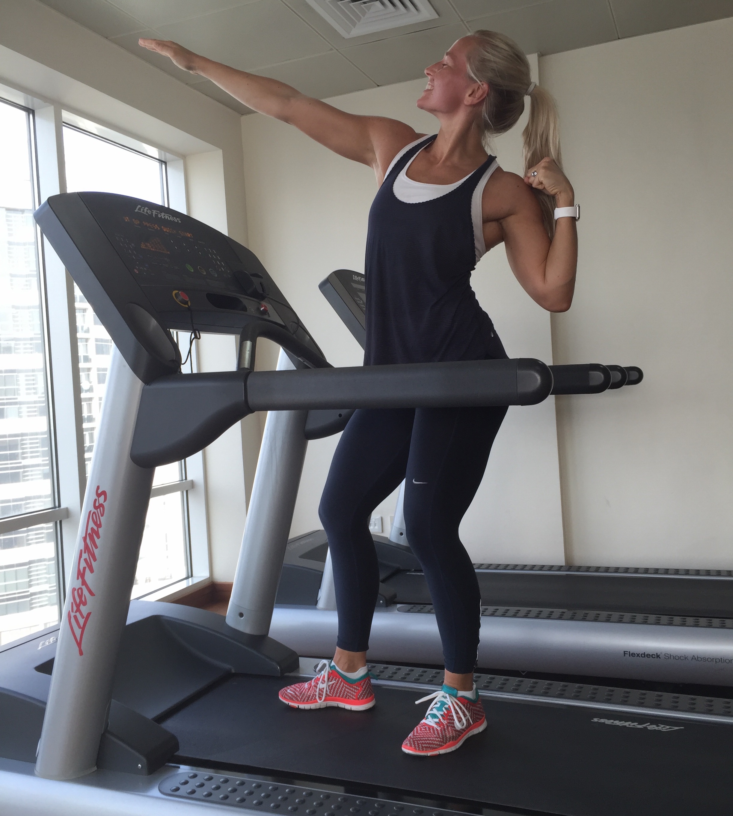Jeg har ikke løpt 3 kilometer på tid siden lenge før jeg ble gravid så jeg visste det ville bli slitsomt, men inn i h******e så grusomt det var. Vi måtte nemlig løpe på en Trueform Tredemølle, og det er døden sammenlignet med en vanlig. Man driver den selv, som ett føkkings hamster, og når man blir sliten er det så mye vanskeligere å presse seg selv. Jeg testet på vår tredemølle tidligere i sist uke, og ble ferdig etter 13 minutt og 15 sekund. Det er jo skikkelig dårlig i forhold til for 2 år siden da jeg klarte å komme under 12 minutt, men det skulle vise seg at resultatet på Trueformen ble enda verre.