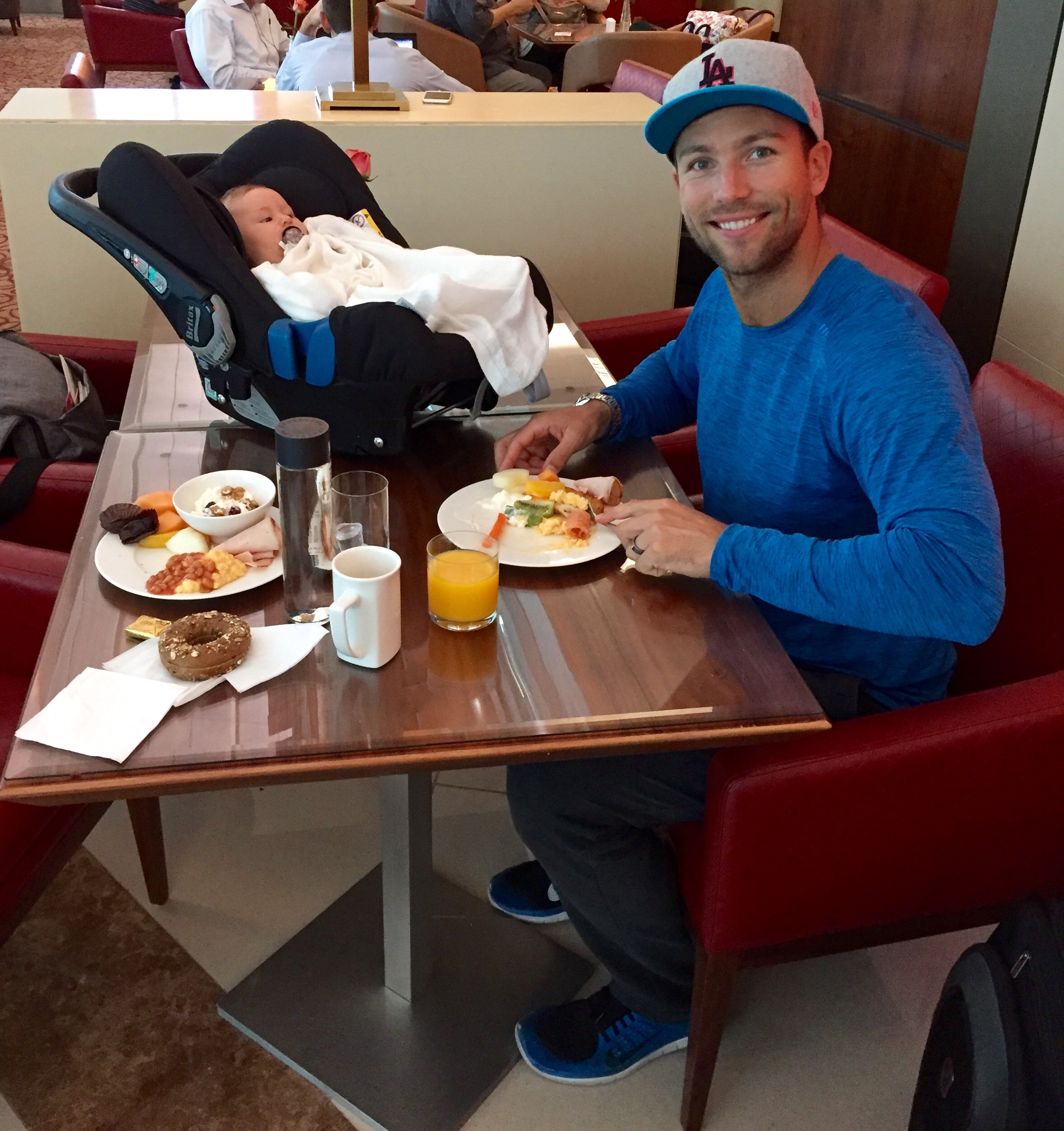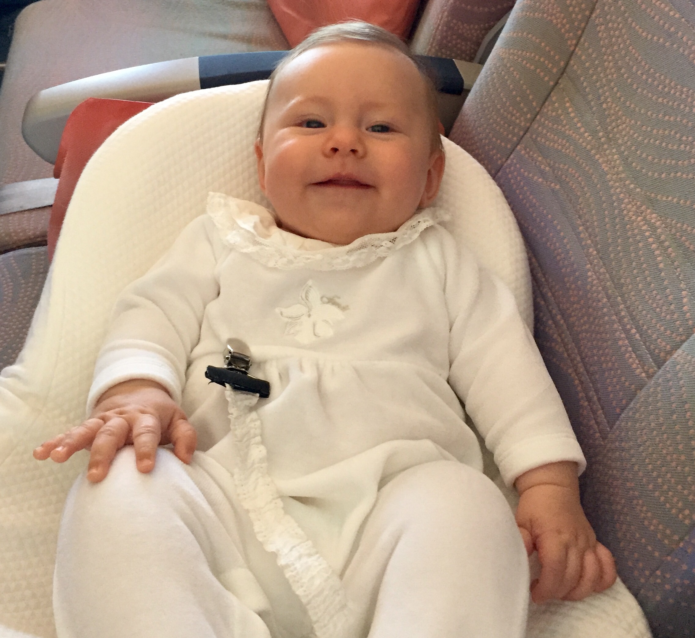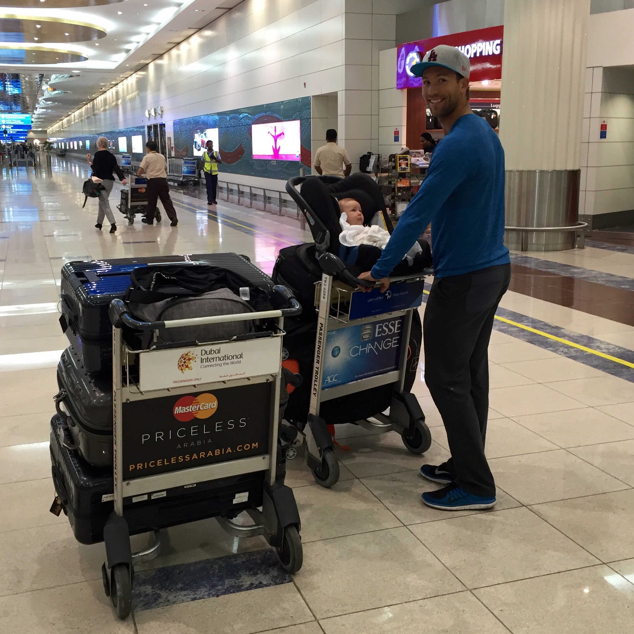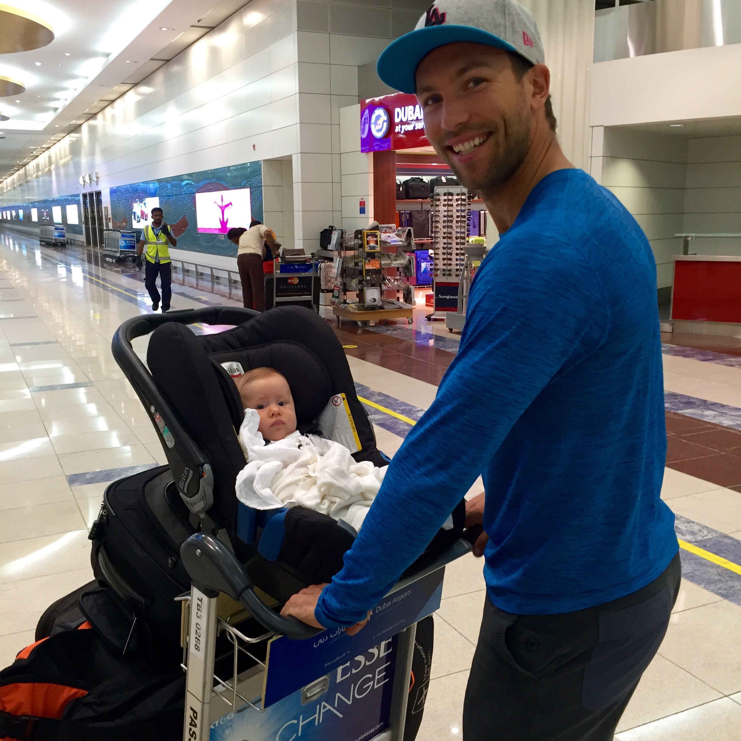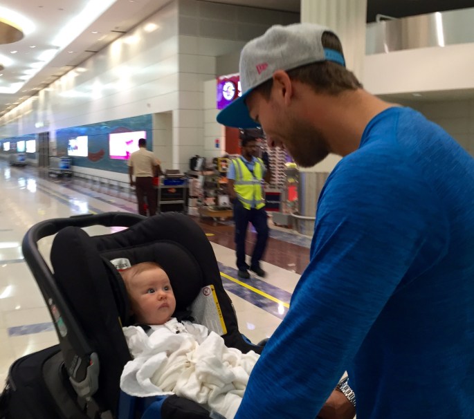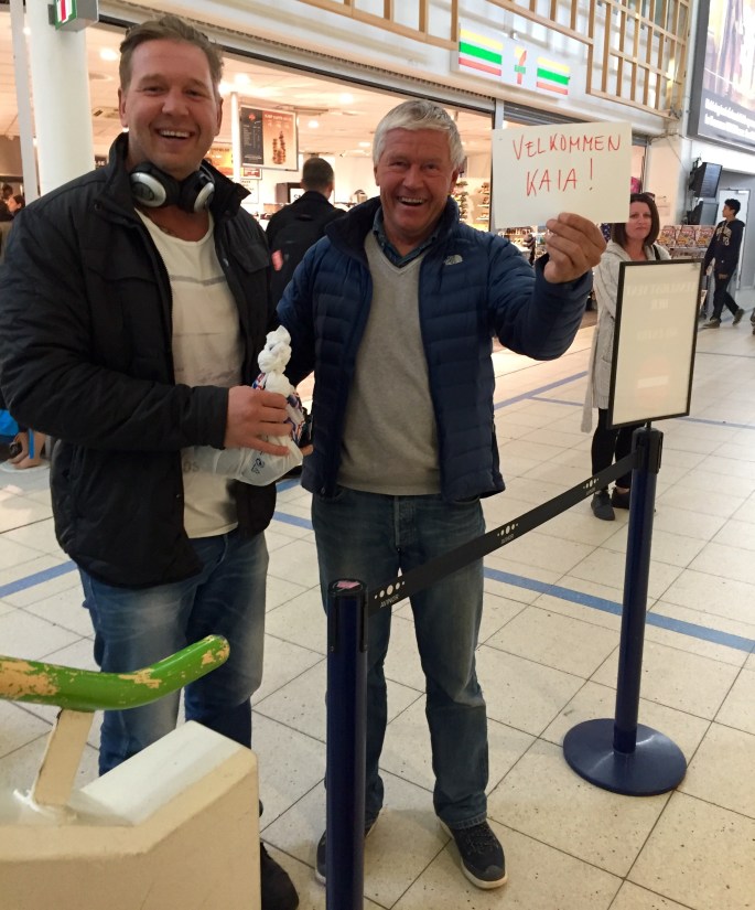 Vi flydde (eller heter det fløy?) via Kjøpenhavn med Emirates, og deretter til Stavanger med Sas. På flyet til Køben hadde vi hadde kjempegod plass og pluss minus 7 timer gikk som en lek. Vi var seriøst nesten helt alene i en del av det to-etasjers flyet, og crewet skjemmet oss helt ut! De var supersnille med oss og skrev til og med brev til Kaia med gode ønsker for fremtiden liksom! Fy søren så kult! Og så fikk vi jo super velkomst på Sola fra pappa og Ole- det krevde nemlig to biler for å få hjem all baggasjen ;-)