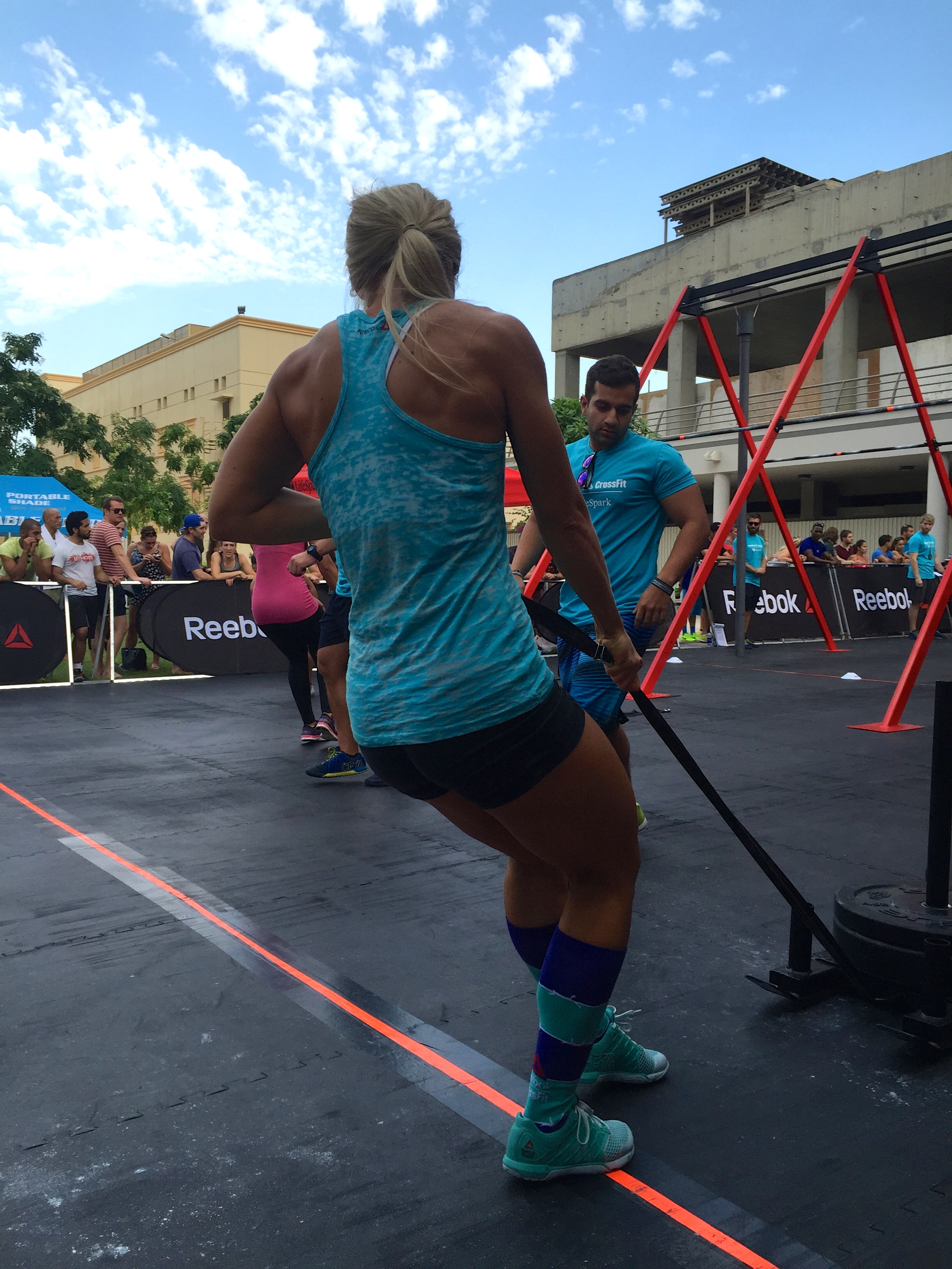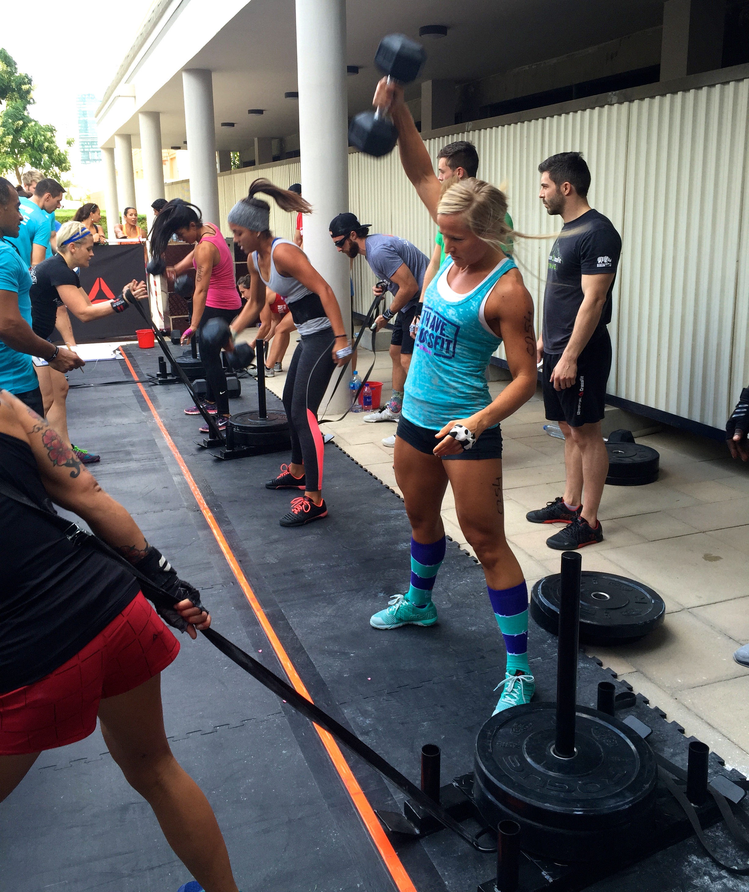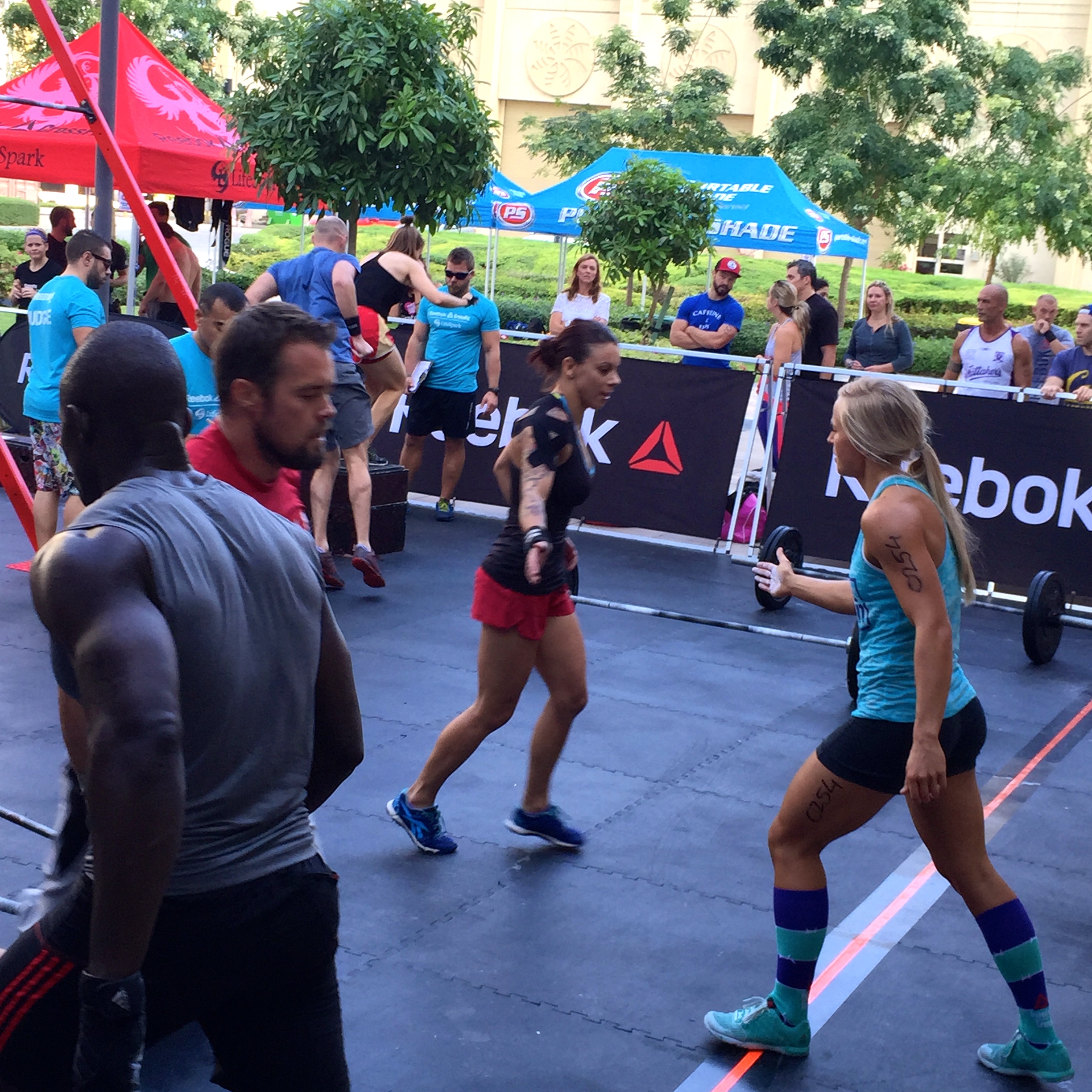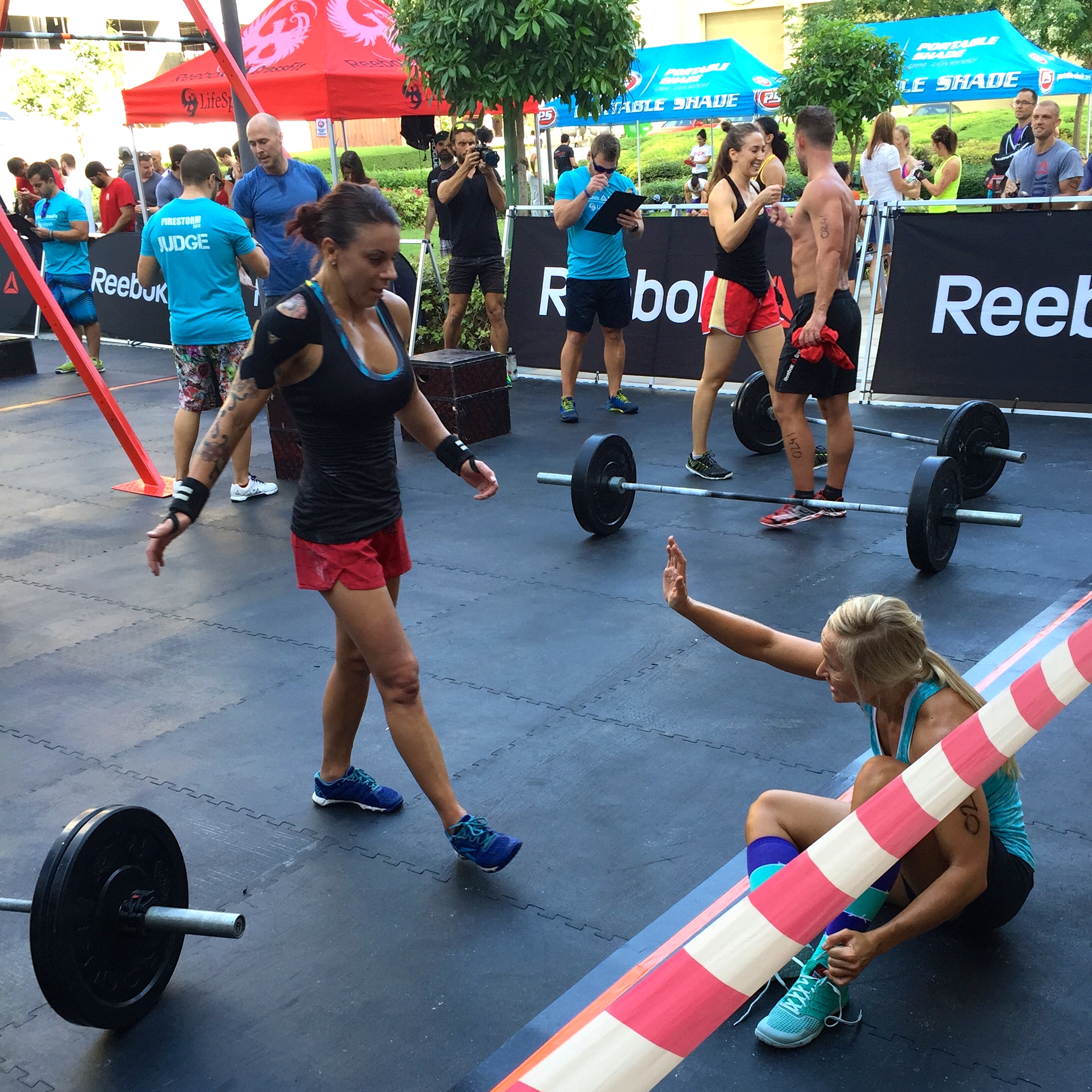 Siste økt var en kort sprint. Jentene jobbet først der den ene gjorde 5, 10, 15 og 20 repetisjoner av alternerende DB snatch med 16kg, men den andre drog en slede med x-antall kilo på. Deretter var det guttene sin tur til å gjøre samme sak bare med tyngre vekter. Det var veldig tett i dette heatet, og vi tullet det desverre litt til med noen unødvendige no-reps slik at vi ble snytt førsteplassen med noen skarve sekund. Likevel ligger vi på førsteplass sammenlagt, så jeg skal visst ikke klage ;-)