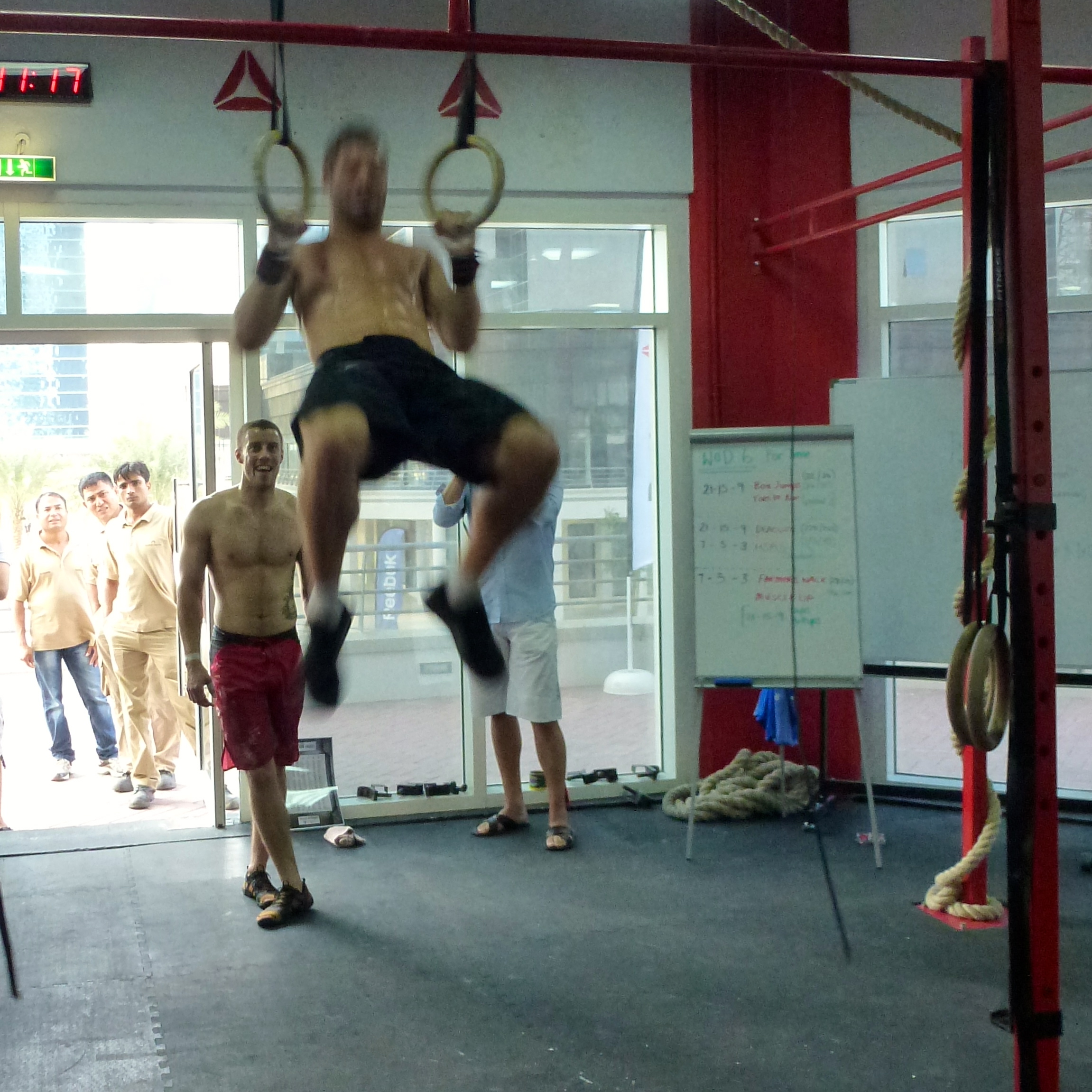 markløftog håndstående push upsjeg bidro kun med 3 reps her altså ;-)farmers walkvet ikke hvorfor vi smiler her. Jeg hatet så sinnsykt denne øvelsen!muscle ups..og mer farmers walk igjenog selv om vi tapte siste økt, vant vi som nevnt hele greia sammenlagt ;-)hele gjengen- fin gjeng!