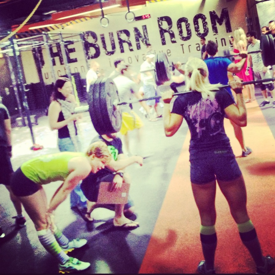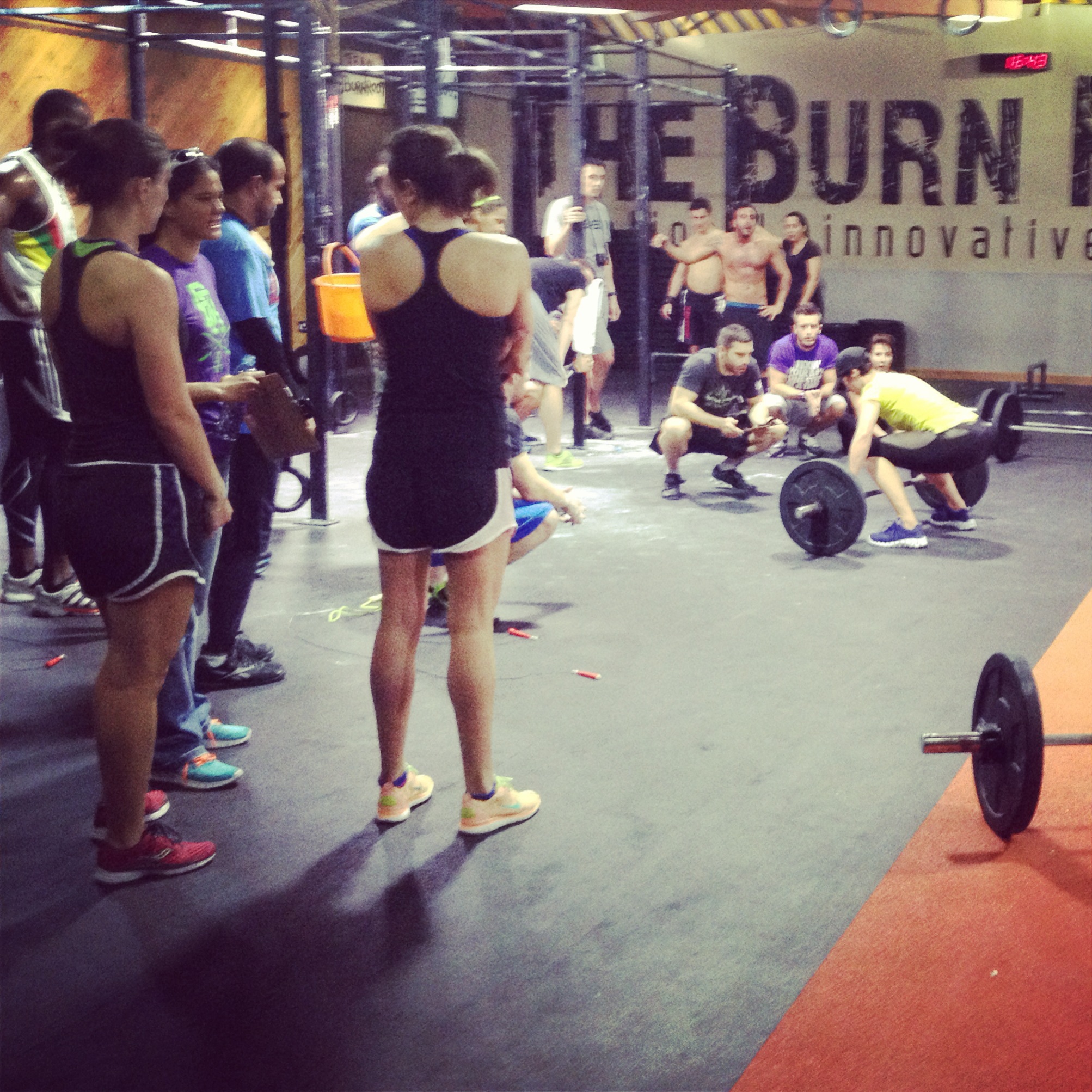 Vi startet i ni-tiden i morges og var ikke klare før kl 3! Vi var i lag på 3, jente og guttelag. Vi kunne enten konkurrere som RX’d eller som scaled (lettere versjon av øktene). Jeg, Reyhana og Candice stilte som lag i RX’d klassen, og vant hele greia!! Men ganske god margin også :-D ..nå skal det jo nevnes at det kun var ett annet jentelag som stilte RX’d da, men likevel ;-)